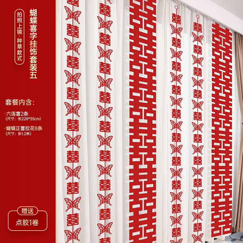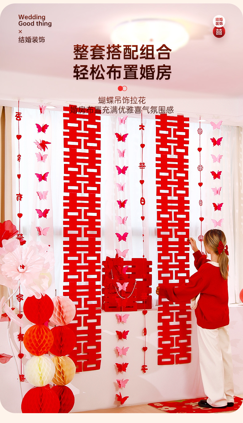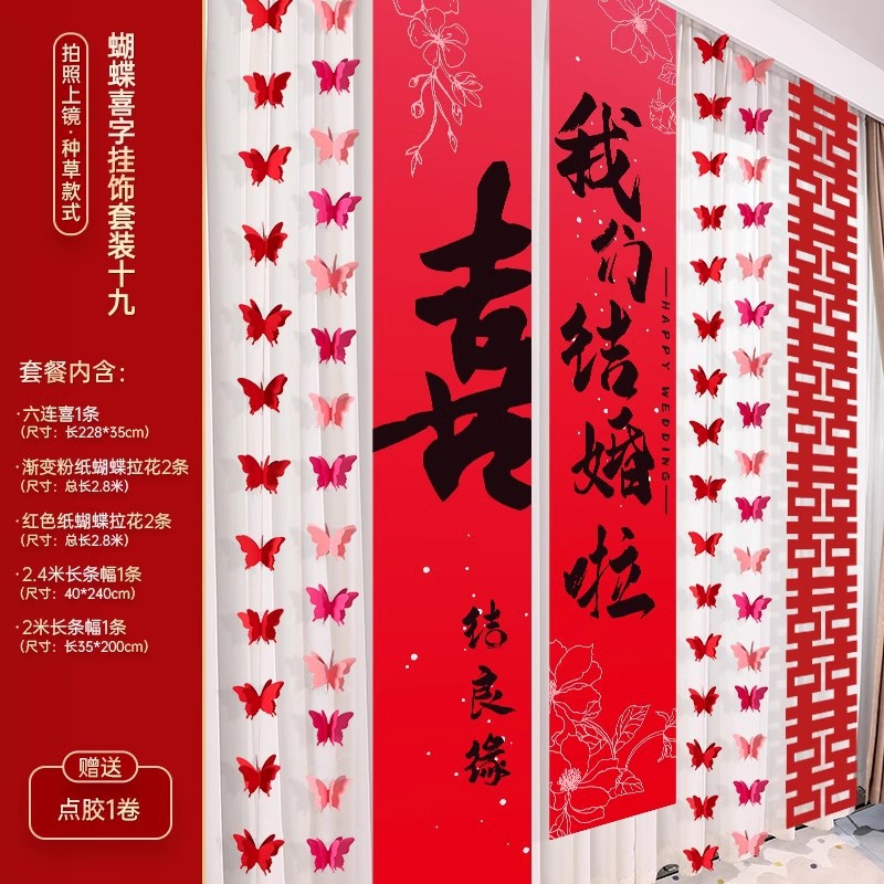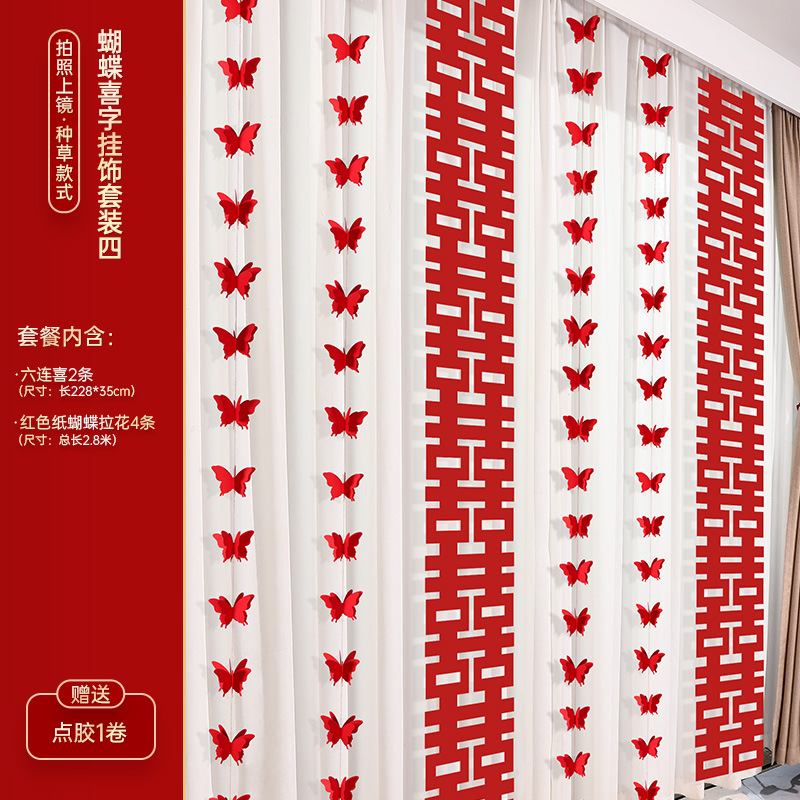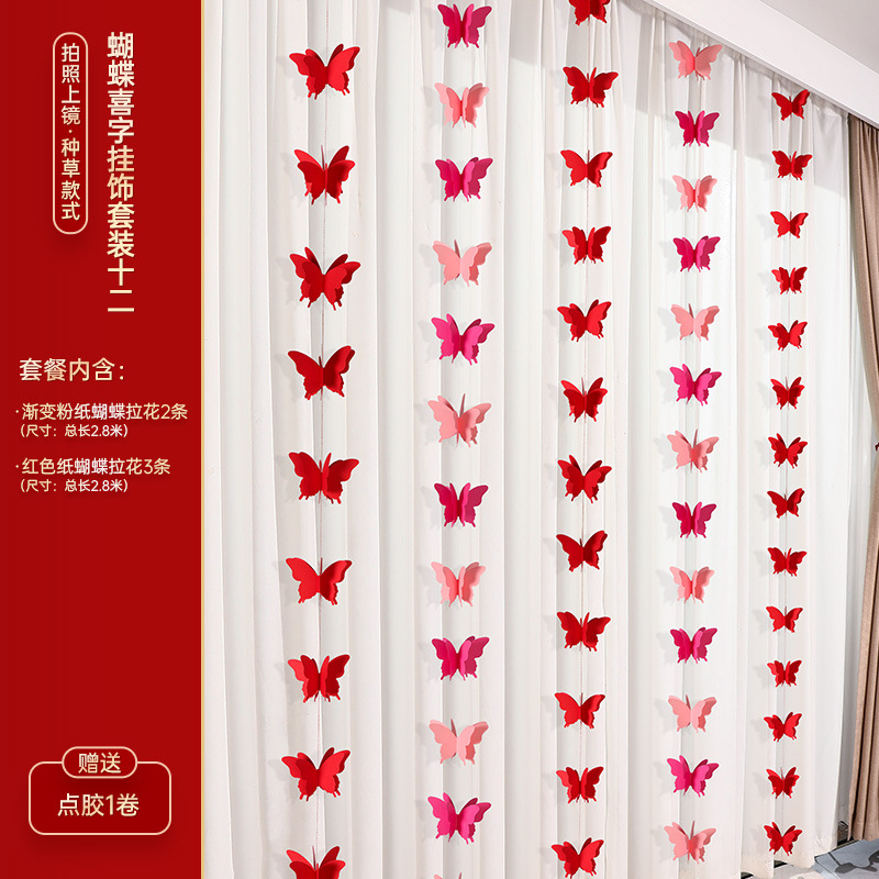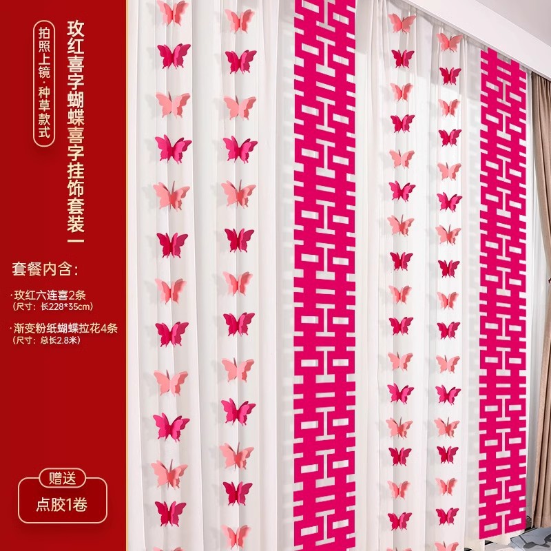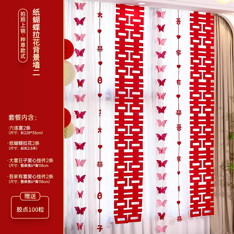 婚房布置装饰用品结婚礼蝴蝶卧室客厅背景墙套装女方拉花窗帘挂饰