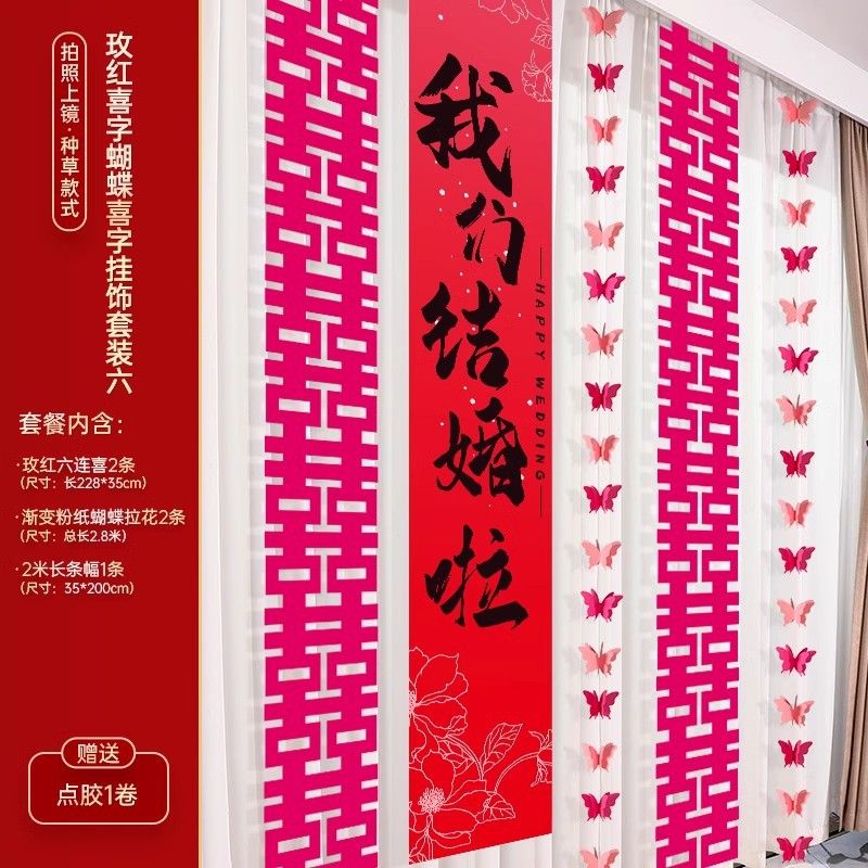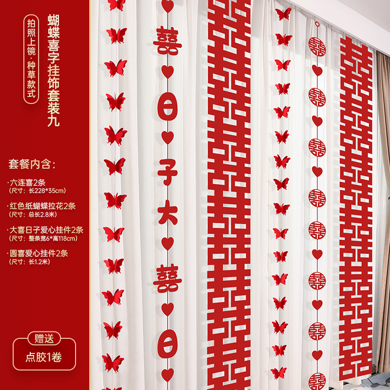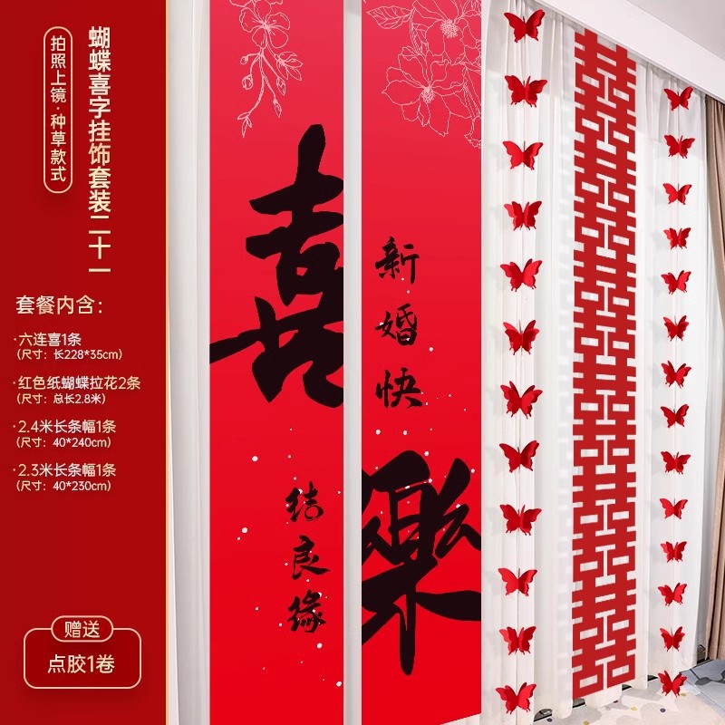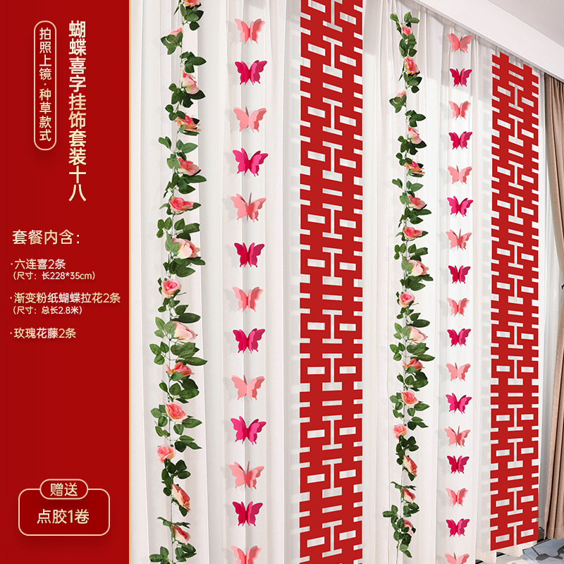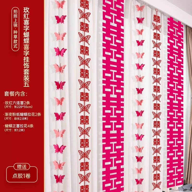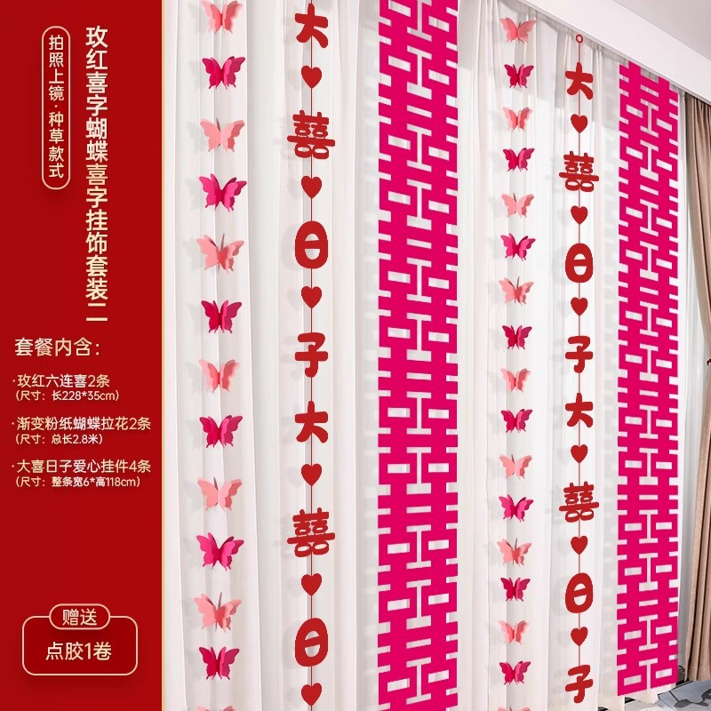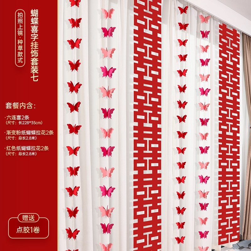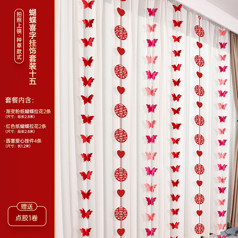 婚房布置装饰用品结婚礼蝴蝶卧室客厅背景墙套装女方拉花窗帘挂饰