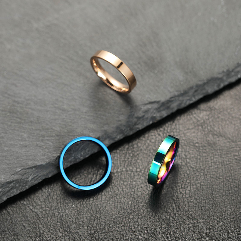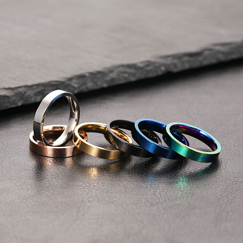 跨境钛钢戒指不掉色小众设计4mm亮光面 素圈不锈钢饰品情侣戒指女