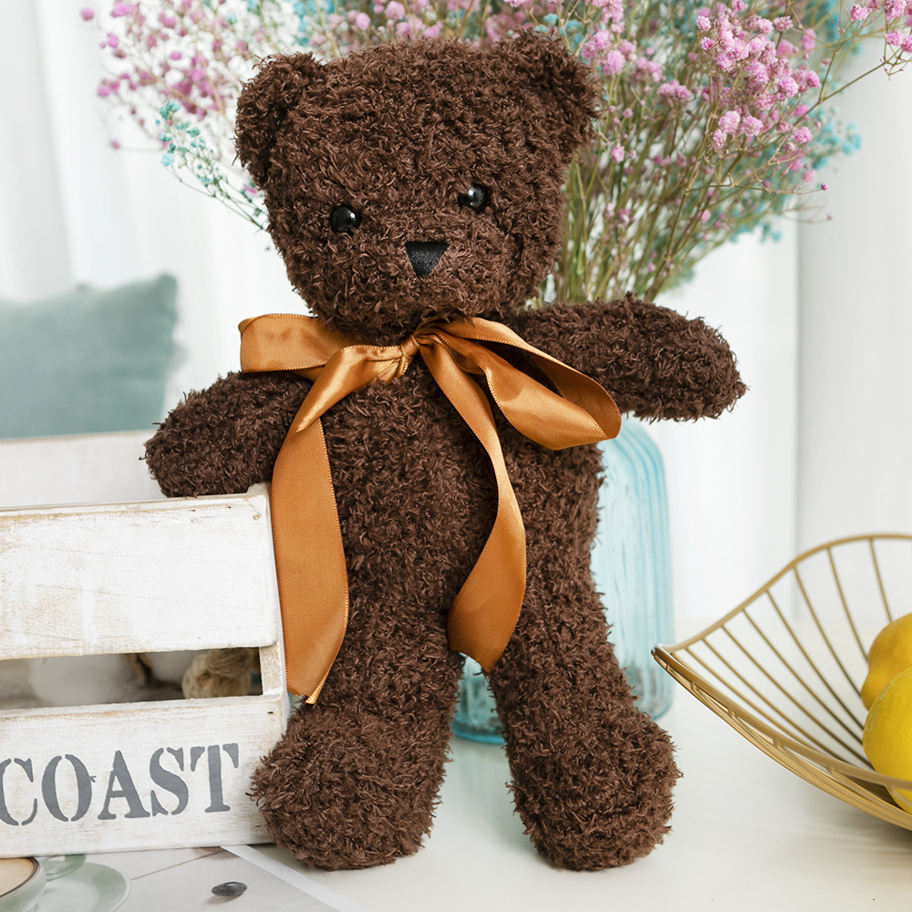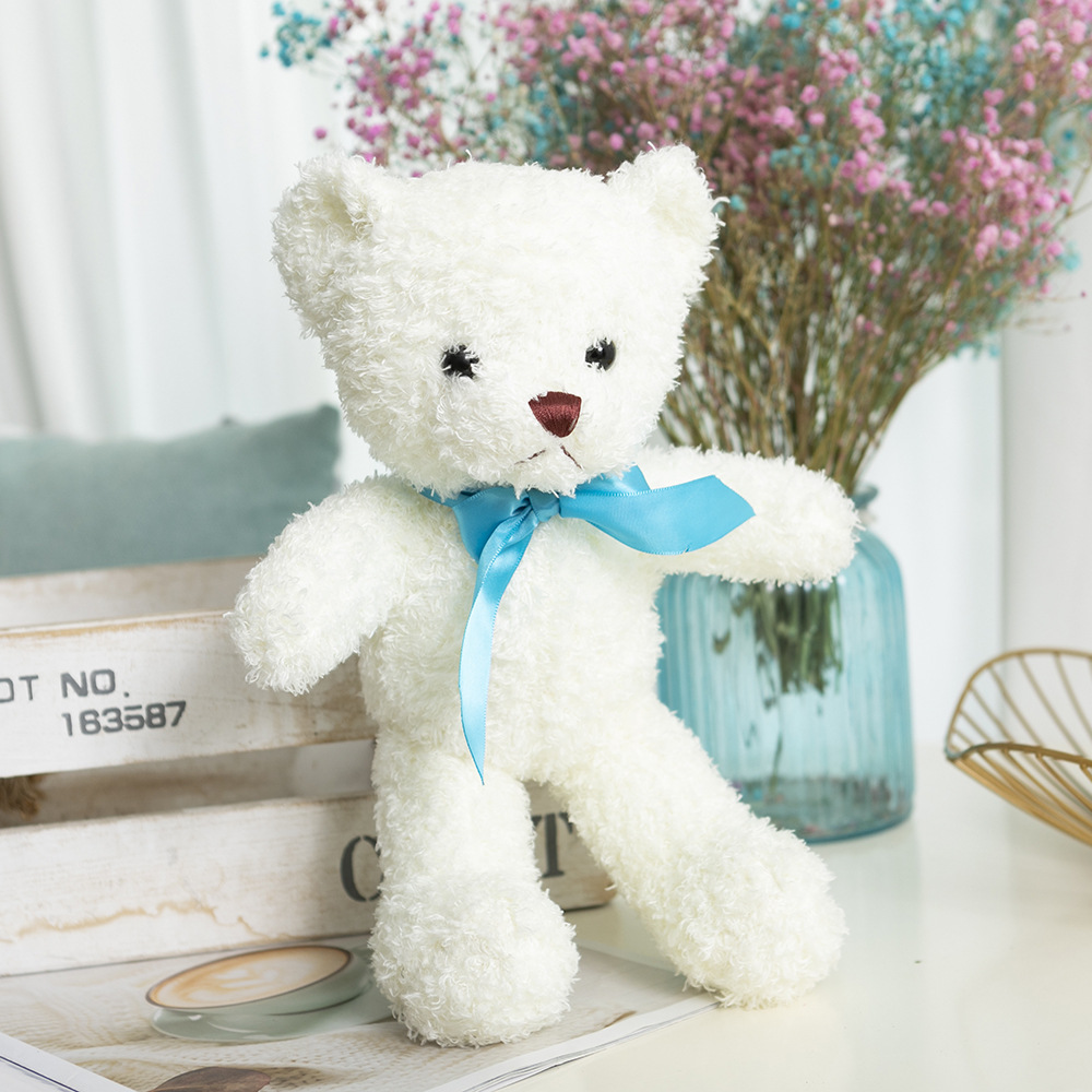 30cm领结玩偶毛绒玩具迪熊长毛丝带坐熊婚礼道具节日礼物四色公仔