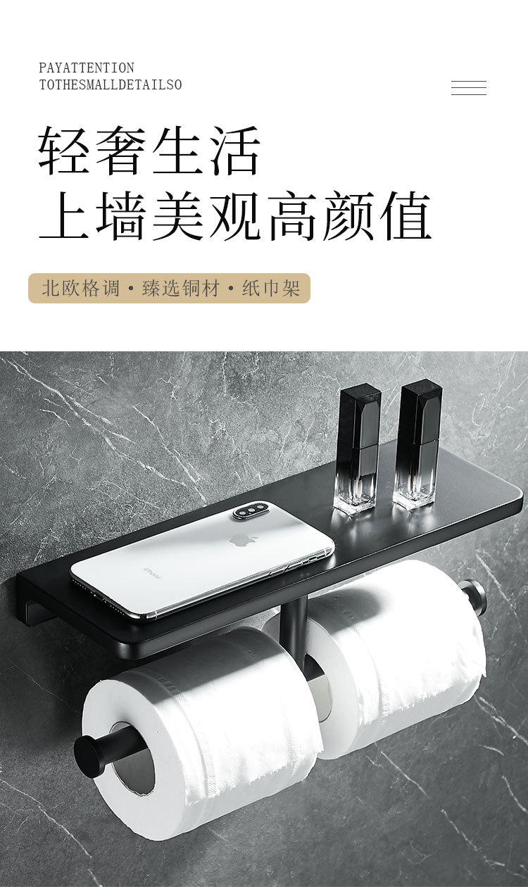 全铜卫生间实心纸巾钩浴室酒店卷纸架工程纸巾钩置物架厕所纸巾架