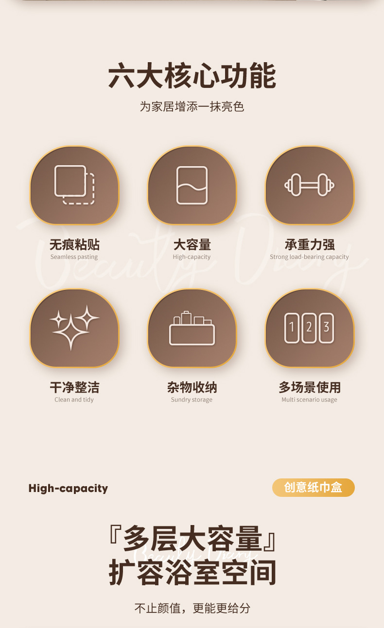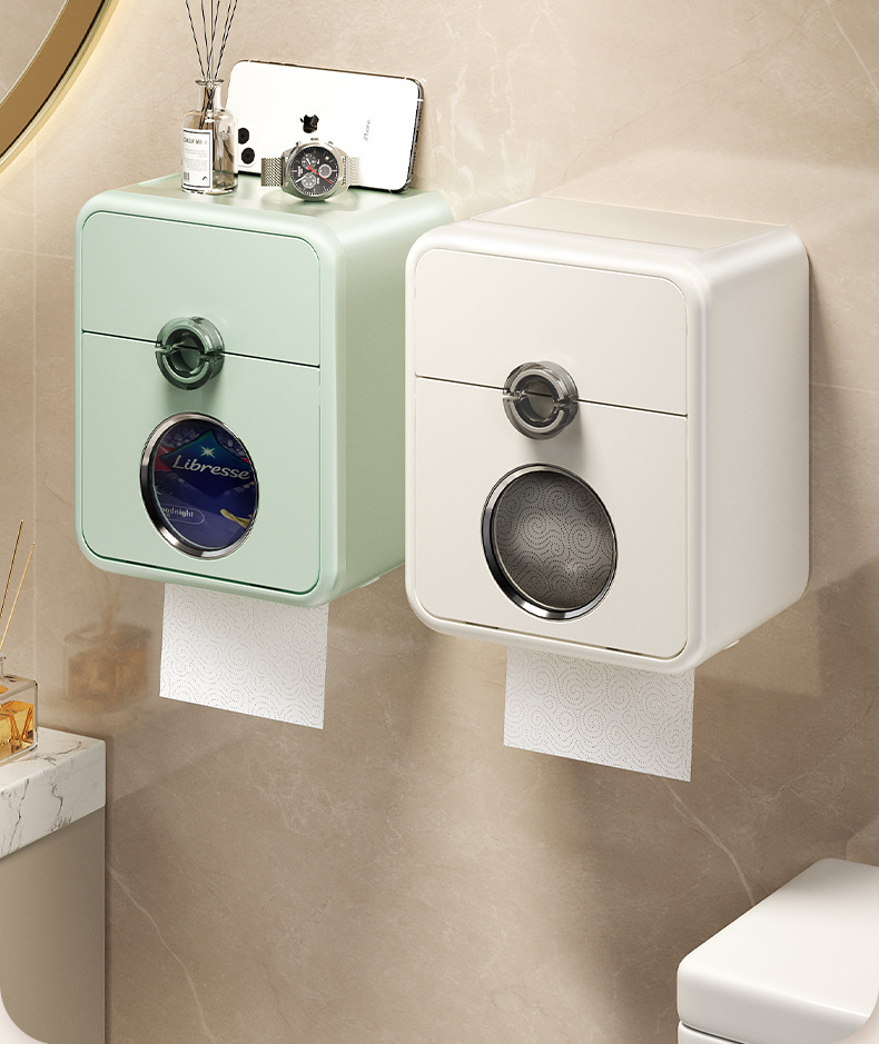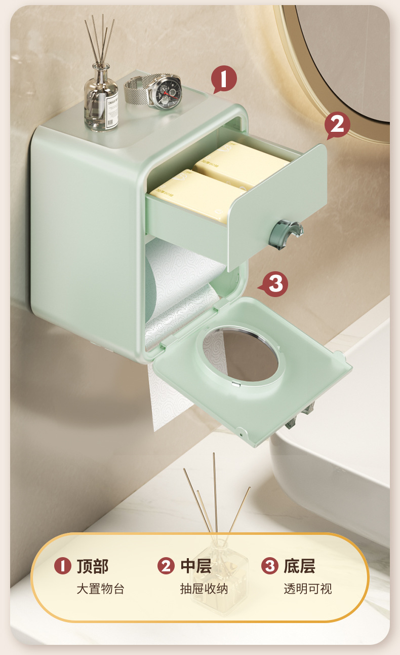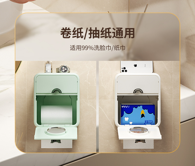 纸巾收纳盒卫生间厕纸盒壁挂抽纸家用厕所纸巾架卷纸盒免打孔双层
