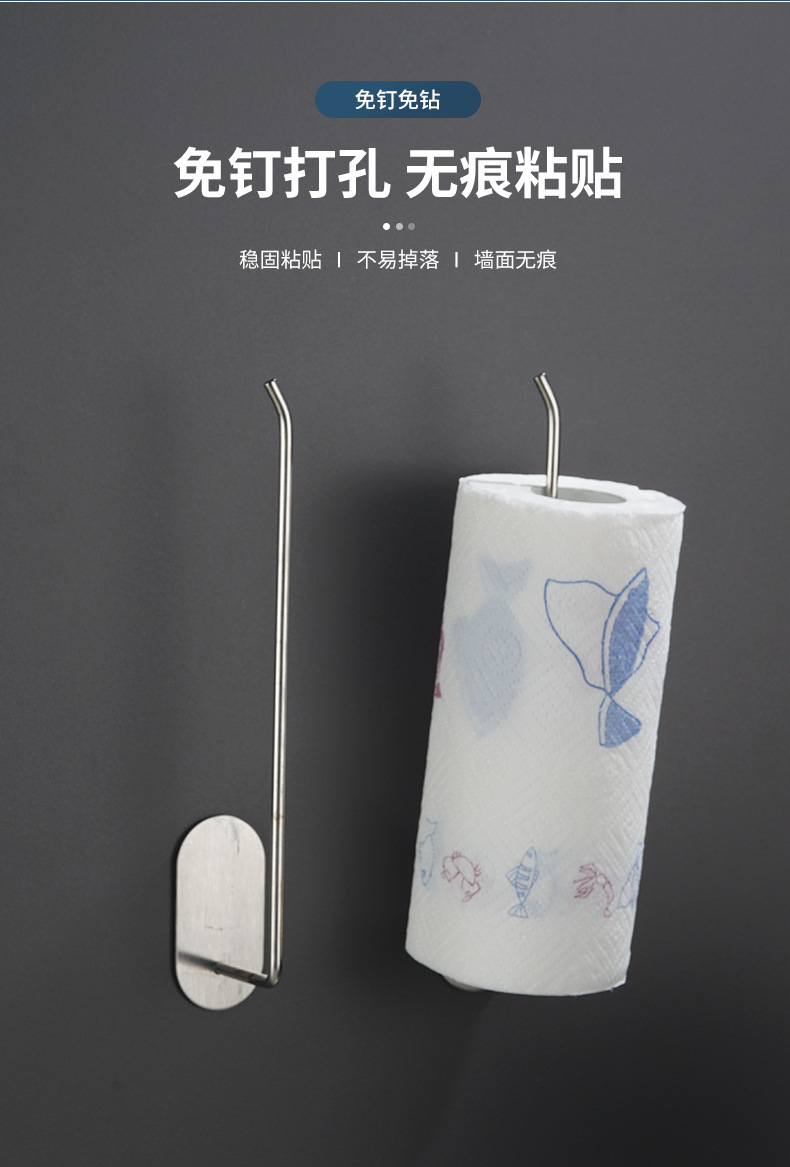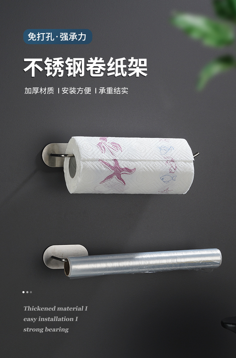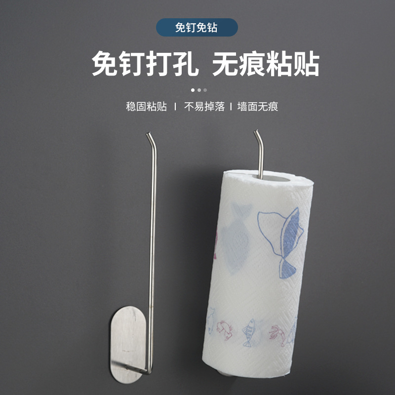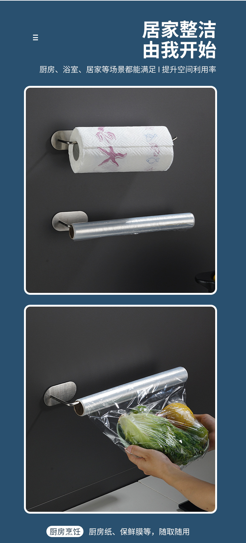 不锈钢厨房纸巾架免打孔懒人抹布支架卷纸保鲜膜壁挂架收纳架子