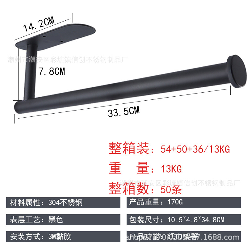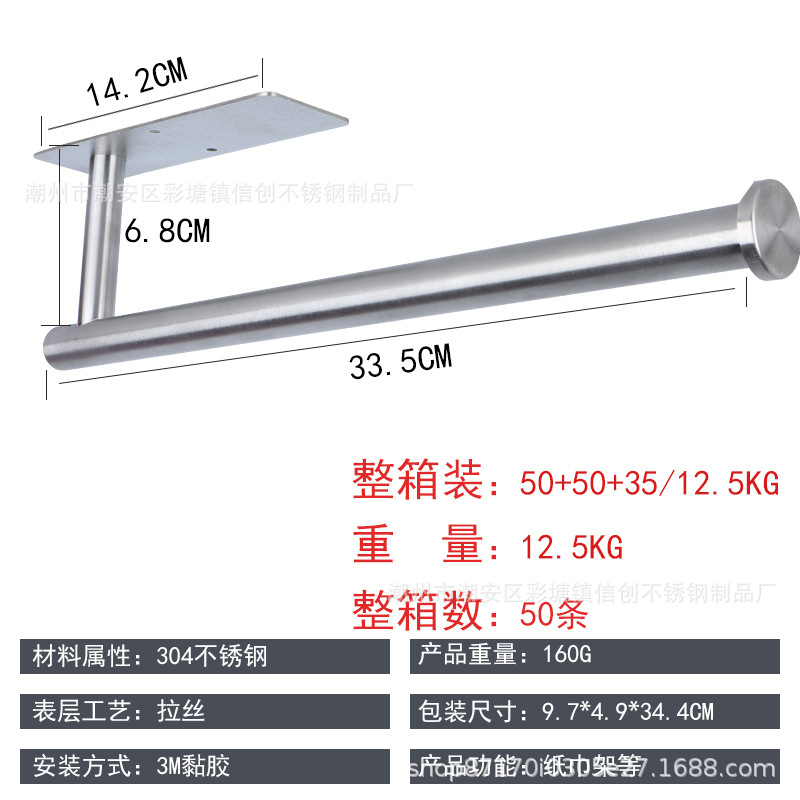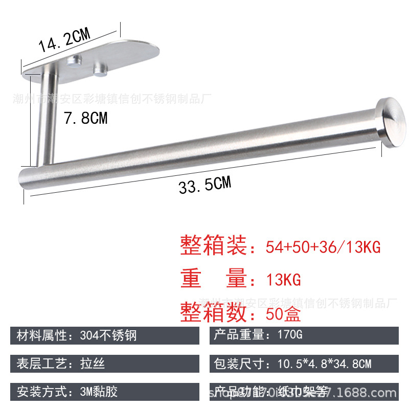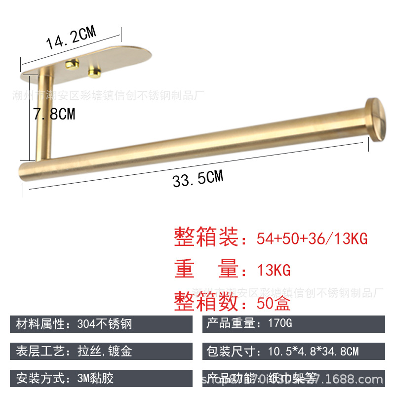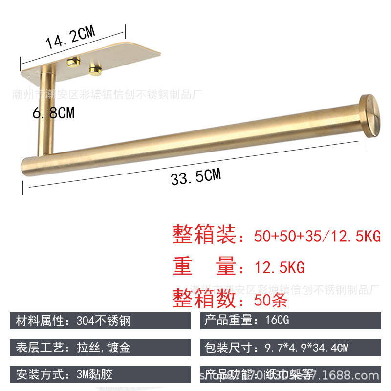 跨境304不锈钢免打孔橱柜挂架抽纸架保鲜膜亚马逊镀金纸巾架