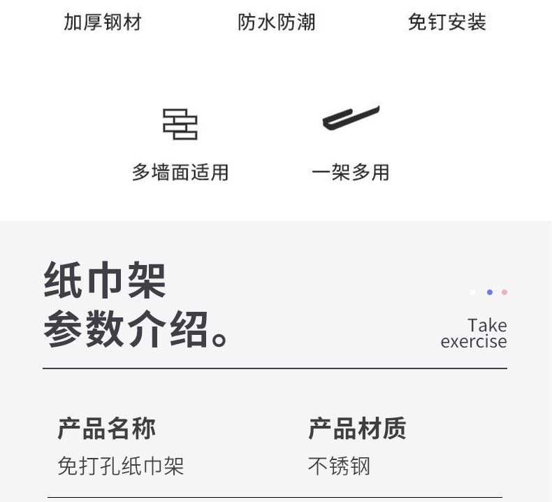 不锈钢纸巾架免打孔厨房餐巾架浴室卫生纸架厕纸架卫生间卷纸架