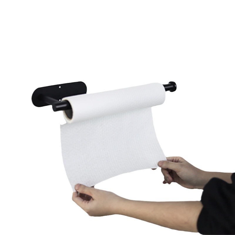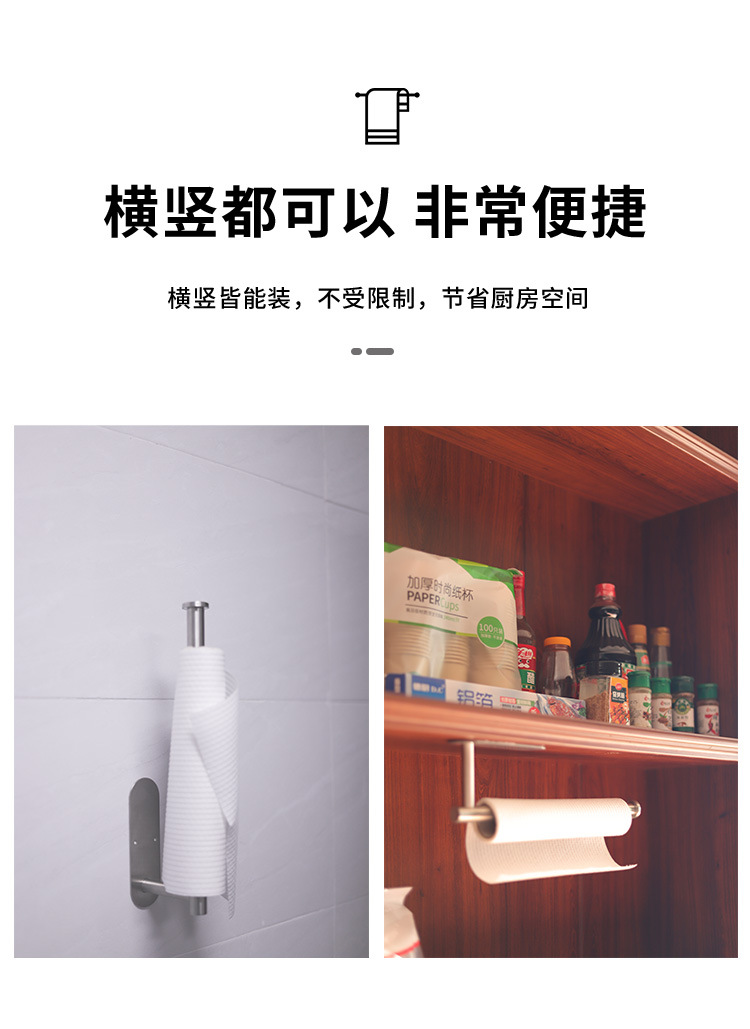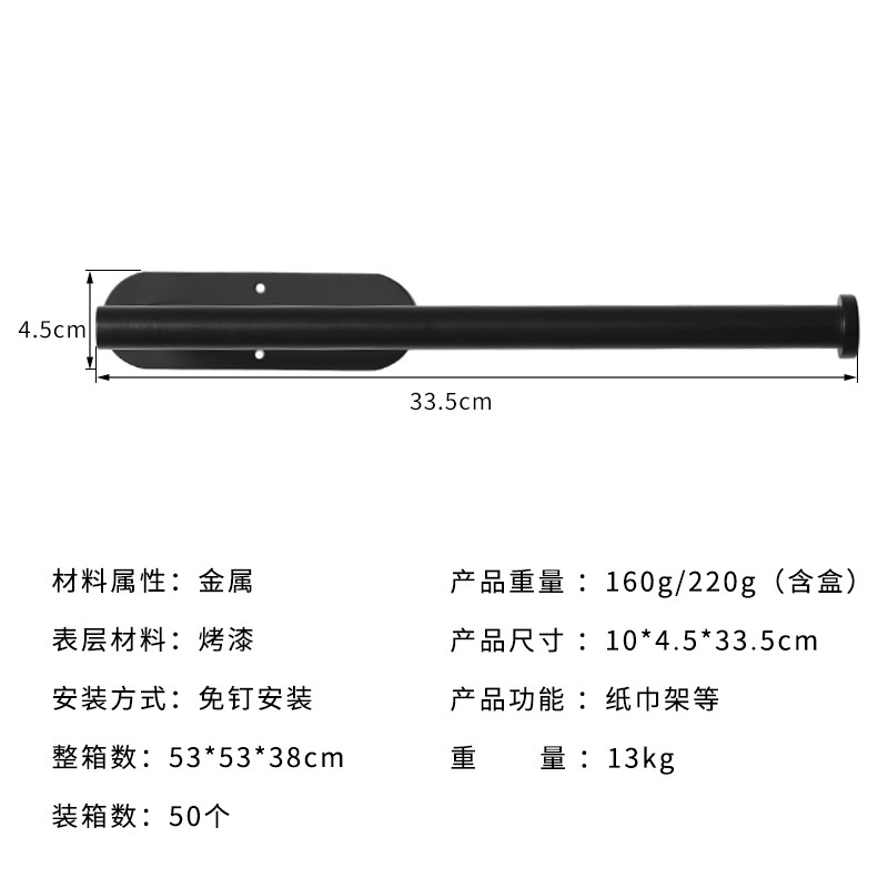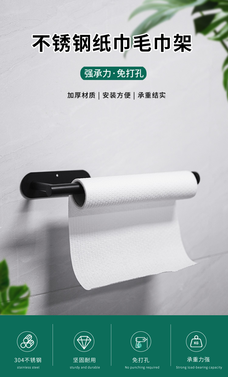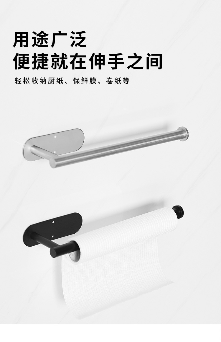 厨房纸巾架不锈钢免钉免打孔自粘壁挂式金属黑色美式卫生间卷纸架