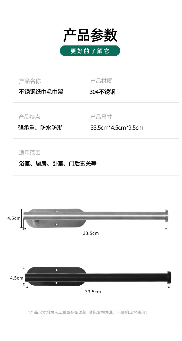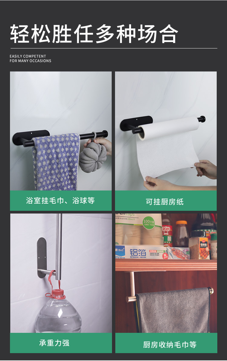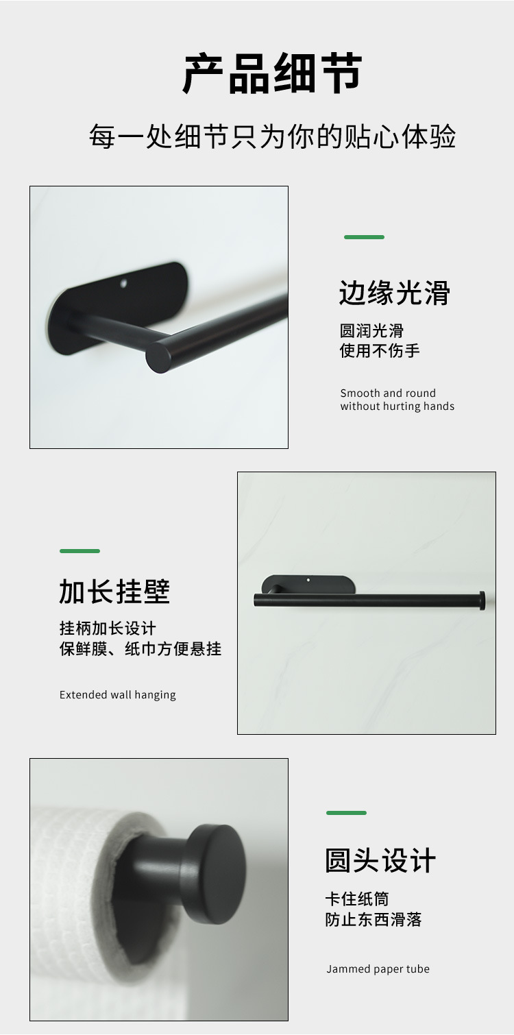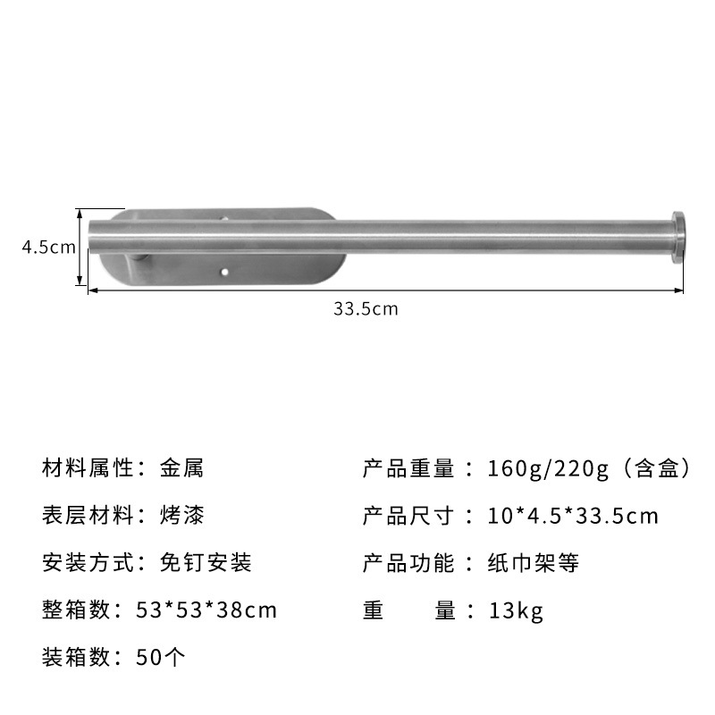 厨房纸巾架不锈钢免钉免打孔自粘壁挂式金属黑色美式卫生间卷纸架