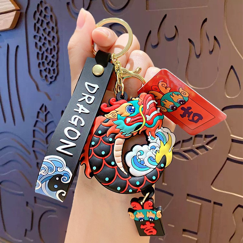 卡通国潮龙年钥匙扣挂件女卡通汽车包包钥匙链龙年公仔小礼品批发