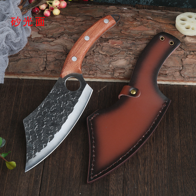锻打指环小菜刀屠夫剔骨刀木柄高碳钢家用户外杀鱼牛羊割肉屠宰刀