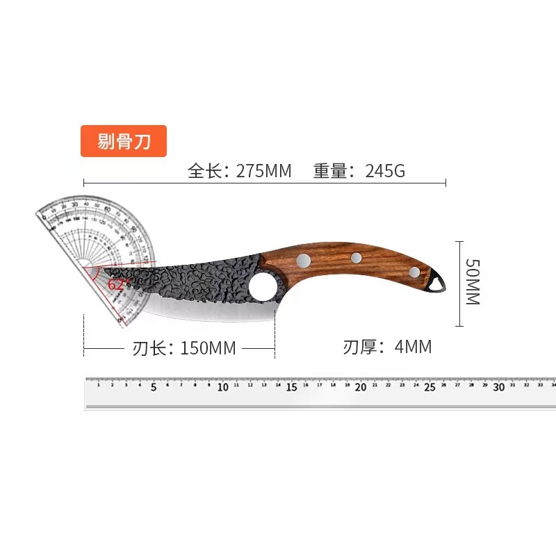 阳江源头工厂不锈钢锤纹锻打厨房剔骨刀切肉刀厨刀户外小弯刀批发