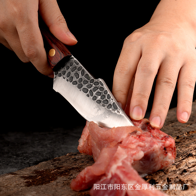 不锈钢锻打锤纹剔骨刀锋利实木手柄屠宰割肉杀猪刀刀家用厨房刀具
