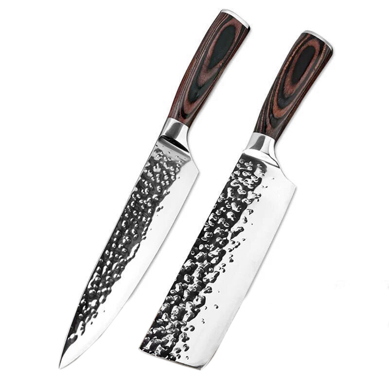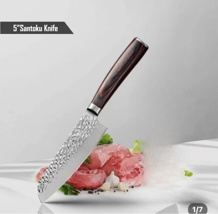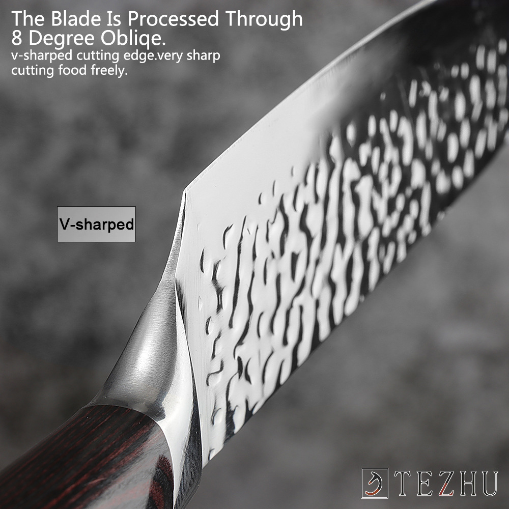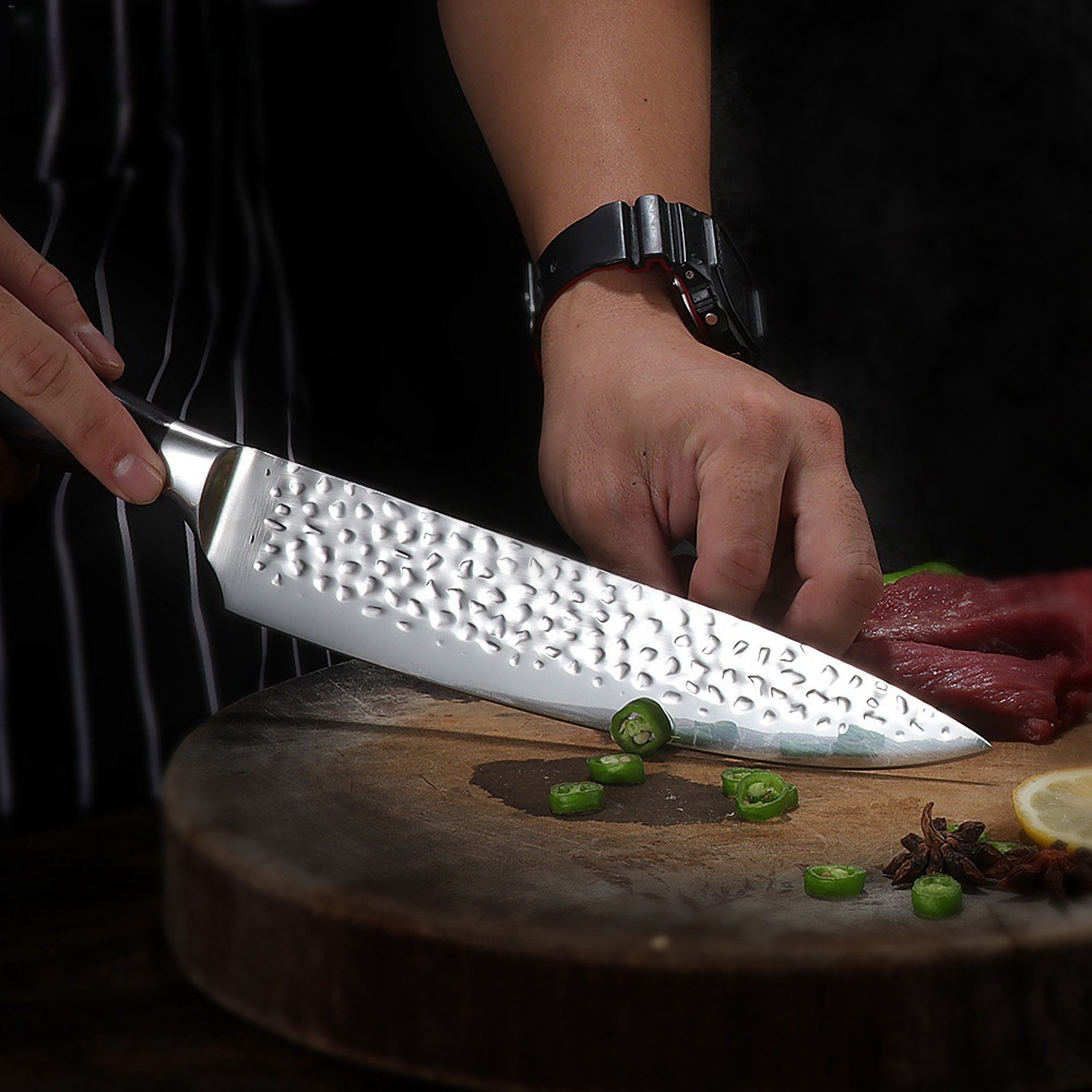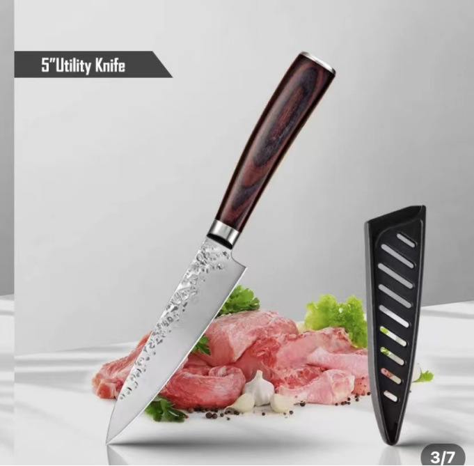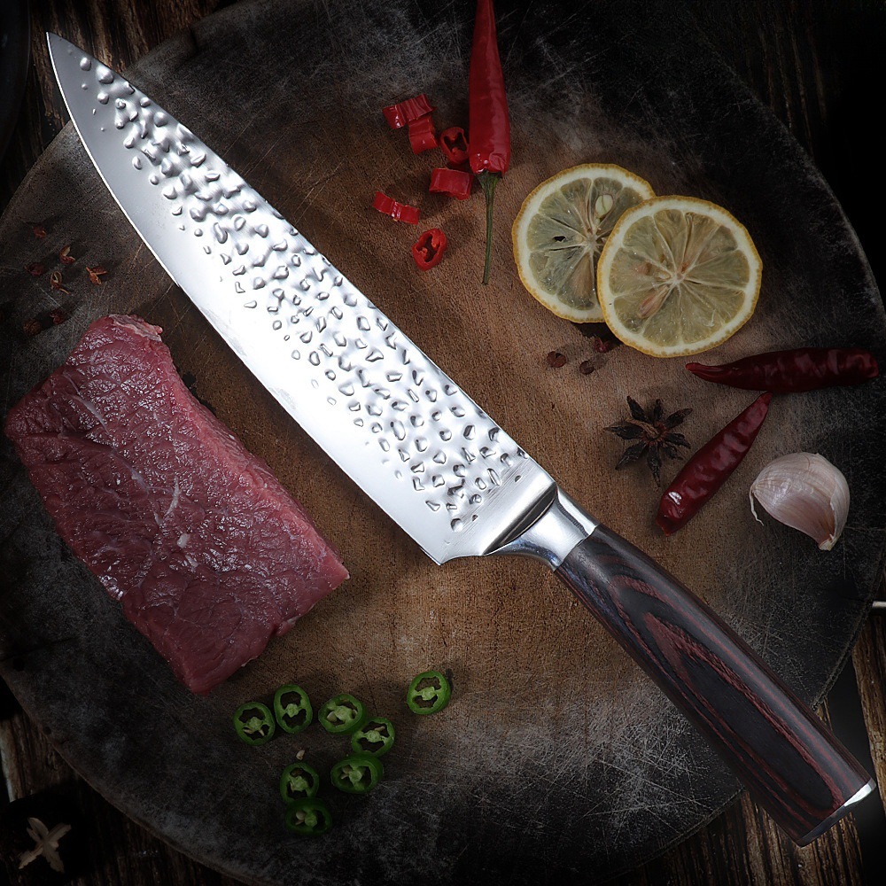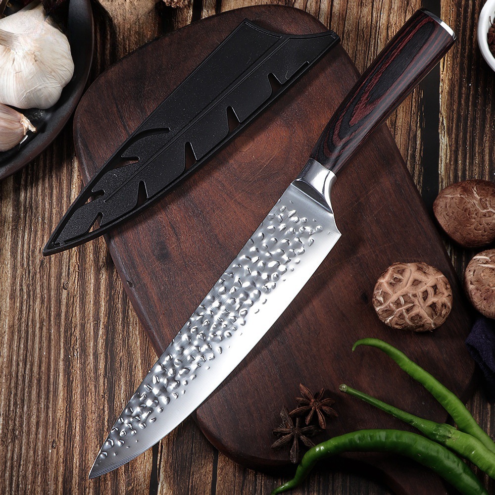 亚马逊跨境 锤纹锻打厨师刀 不锈钢彩木切肉料理剔骨刀水果刀锋利