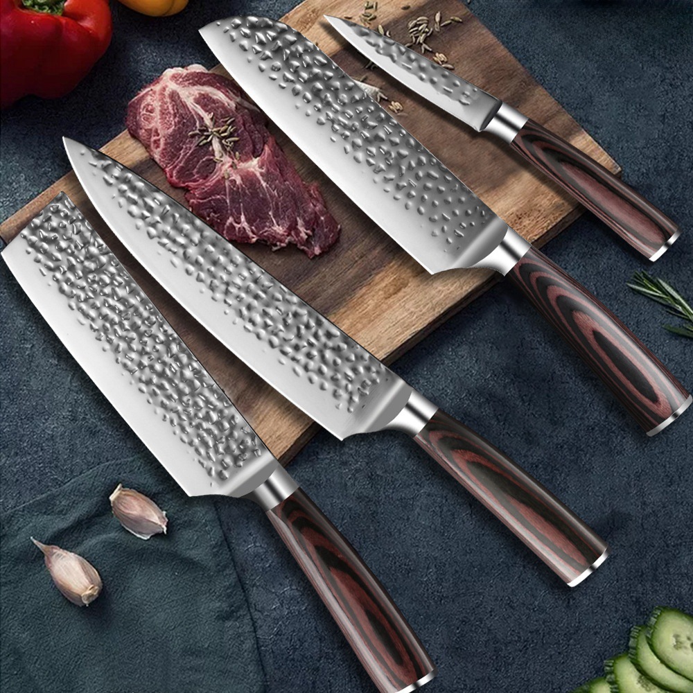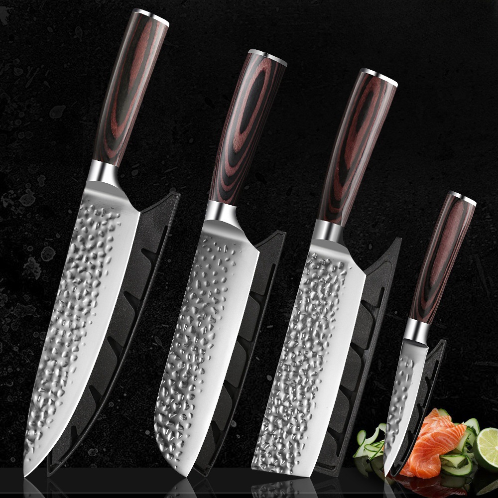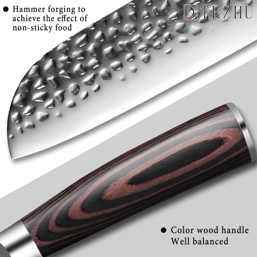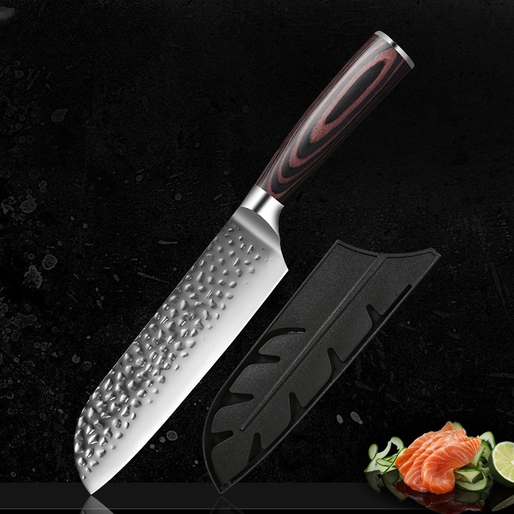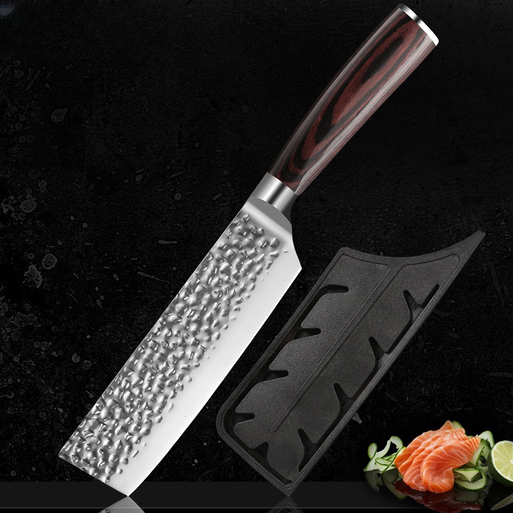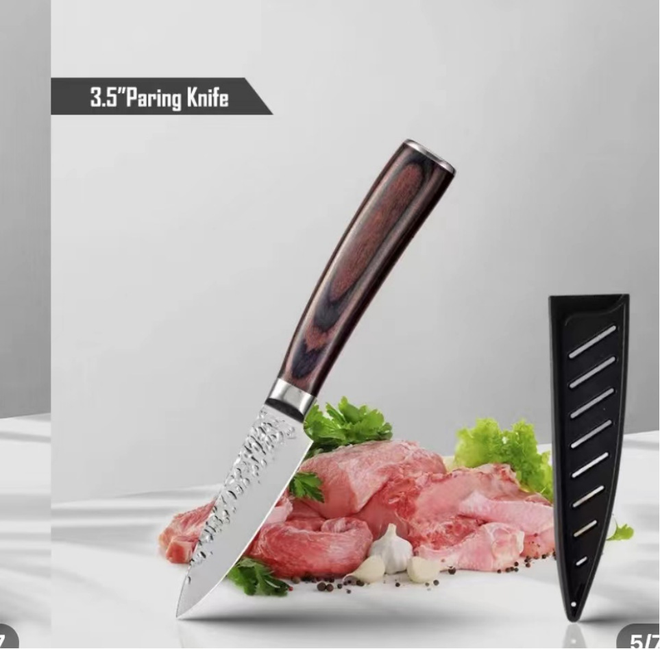 亚马逊跨境 锤纹锻打厨师刀 不锈钢彩木切肉料理剔骨刀水果刀锋利