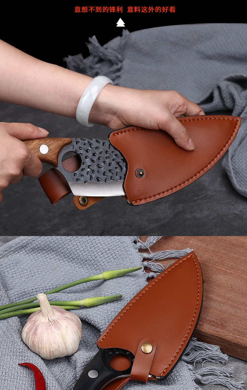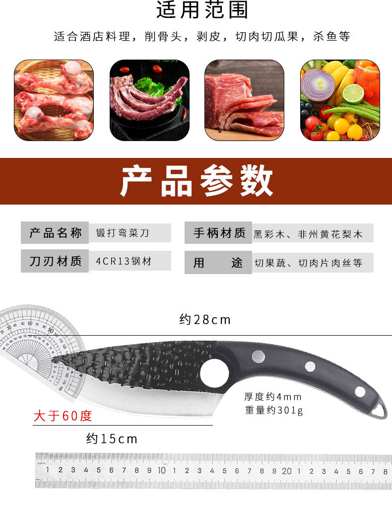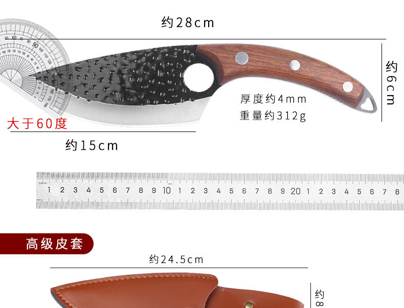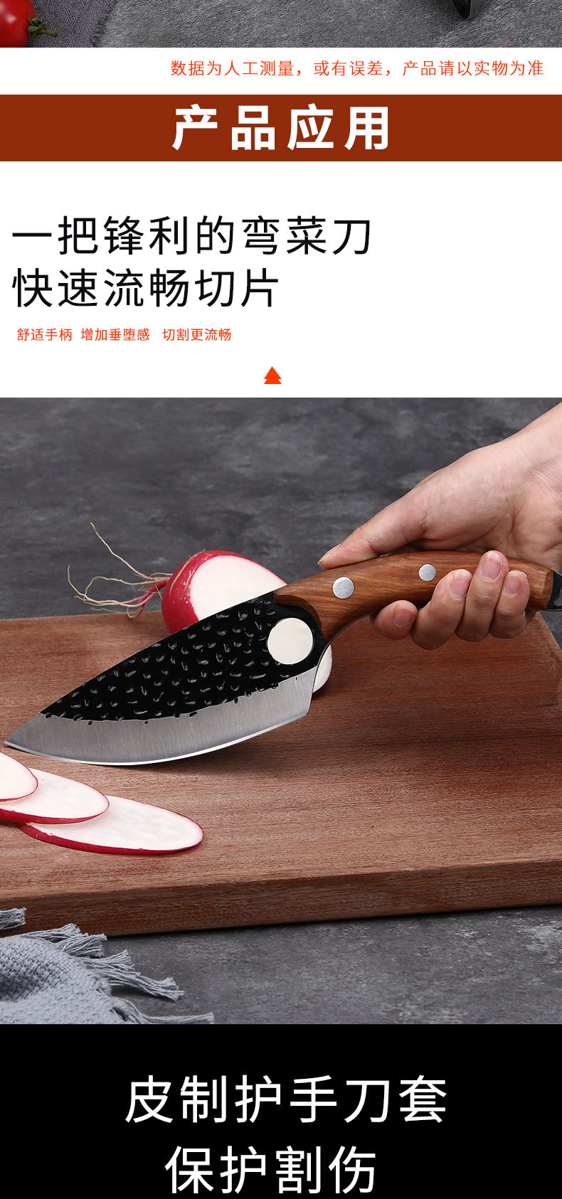 锤纹锻打剔骨刀杀猪屠宰户外小弯刀锋利野炊刀厨房家用割肉切肉刀