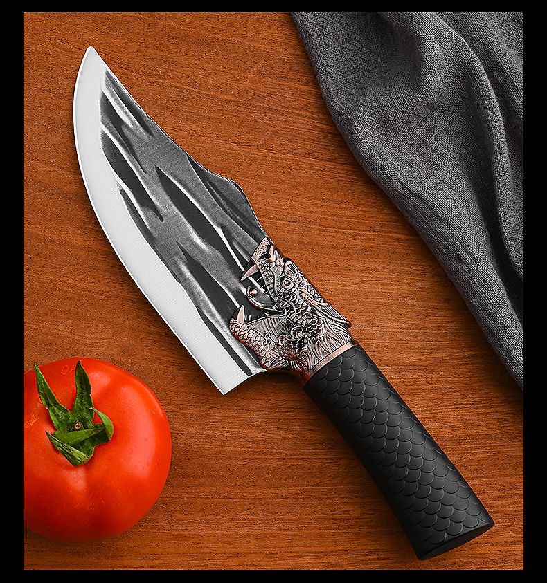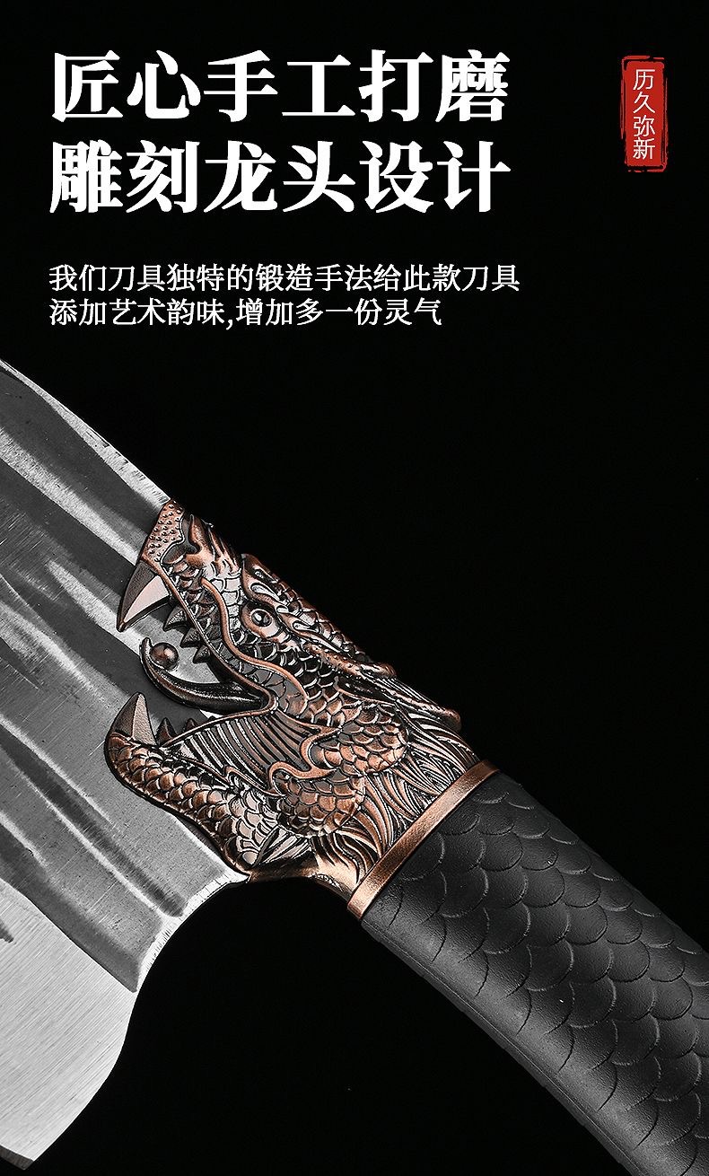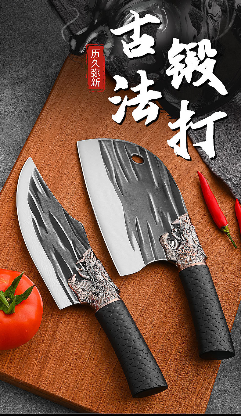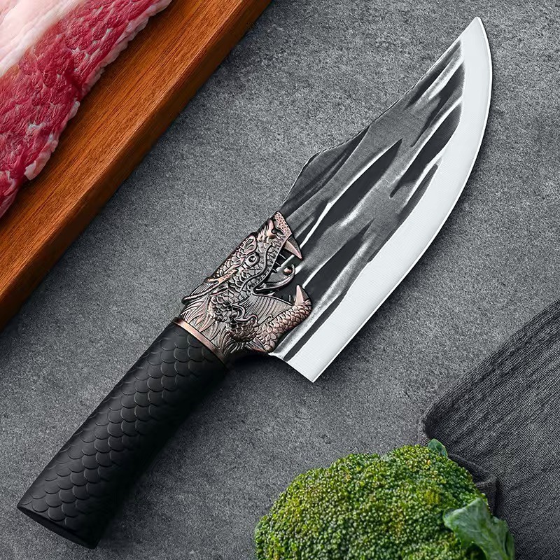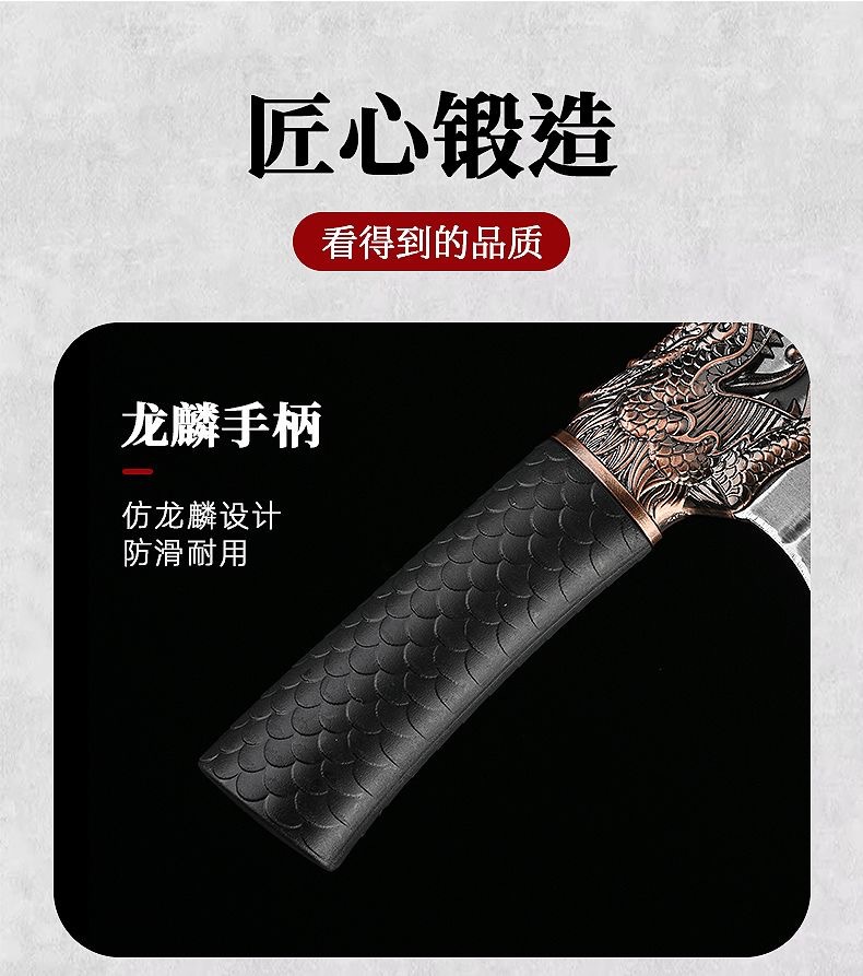 锻打龙头龙鳞防滑柄锋利菜刀家用多功能多用不锈钢屠宰切肉分割刀