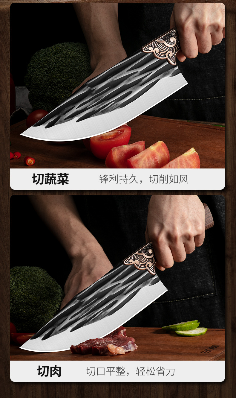 手工锻打屠宰刀商用杀猪刀家用切肉切菜刀专用分割刀锋利剔骨刀具