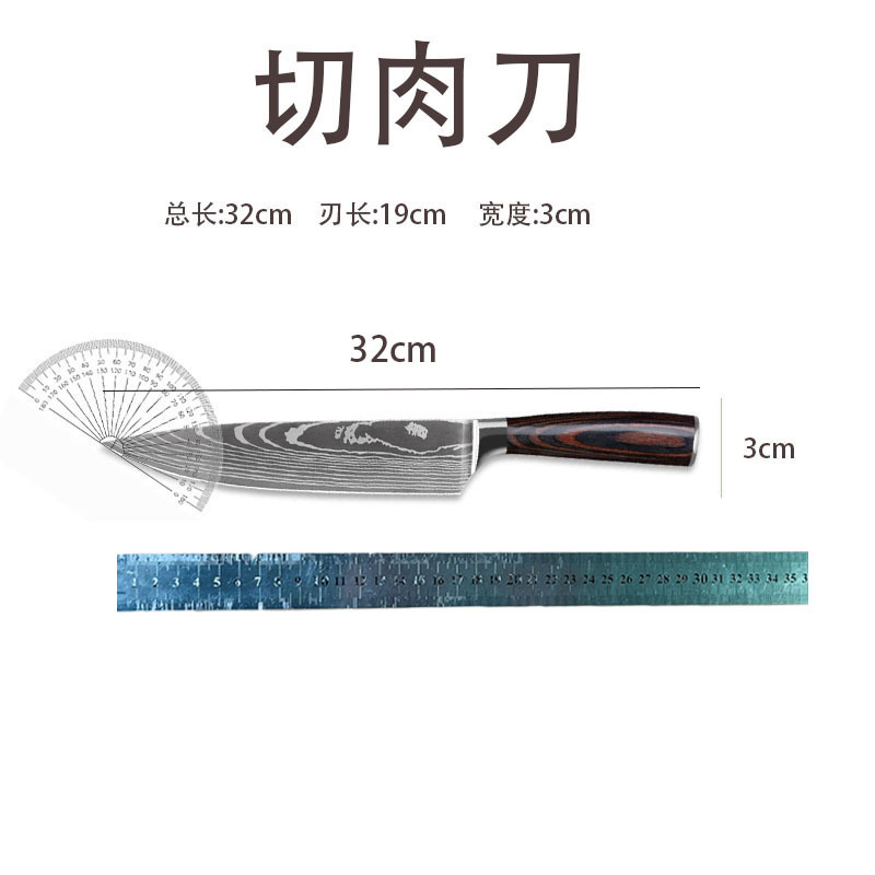 阳江菜刀刀具套装厨房款不锈钢厨房用刀大马士革纹剔骨刀切片刀