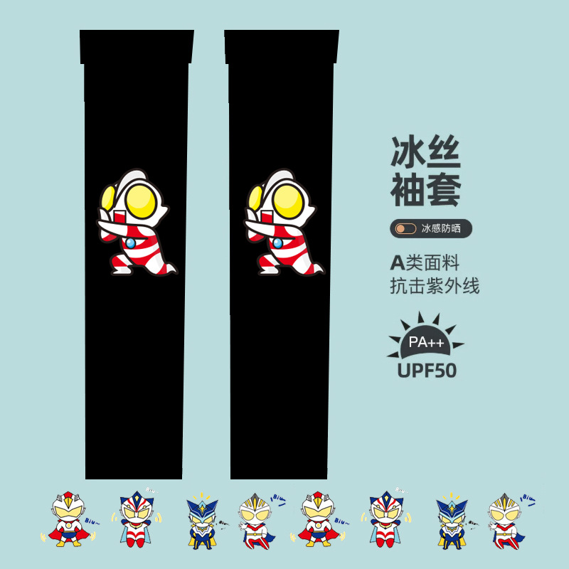 新款儿童夏季冰丝防晒袖套卡通奥特曼公主男女童宝户外防紫外线