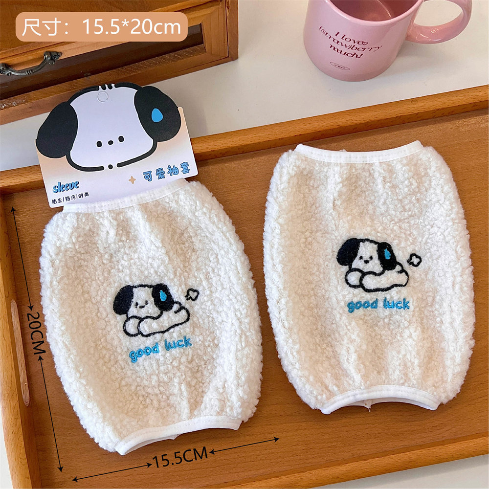 创意卡通可爱小狗袖套泰迪绒绣花图案防污袖套秋冬季儿童防脏袖套