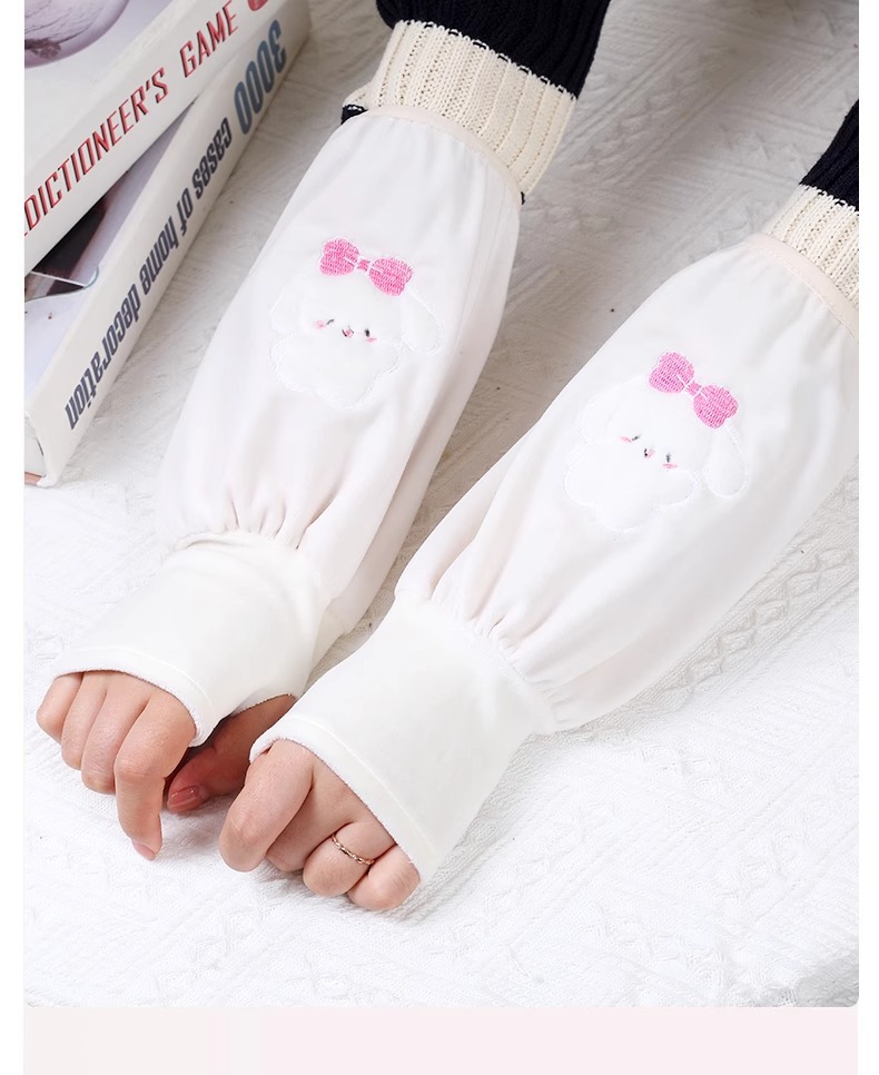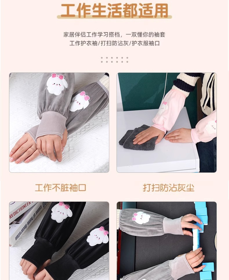秋冬长款兔子袖套防脏保暖二合一手套成人套袖超萌学生儿童手套女