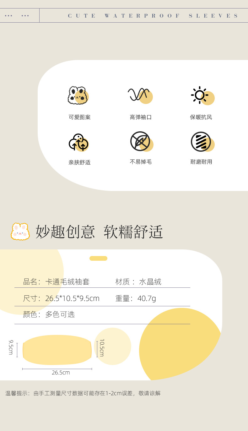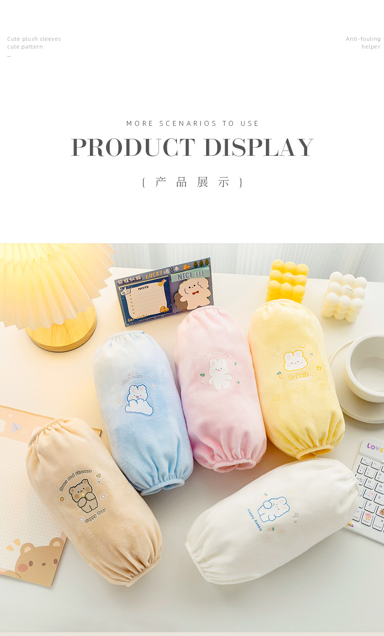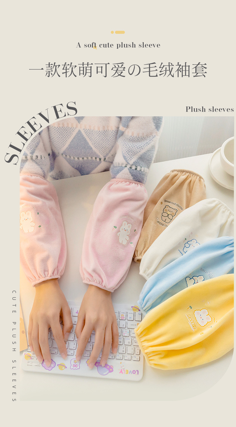新款可爱卡通熊兔毛绒袖套男女儿童秋冬护袖办公室上班工作防脏套