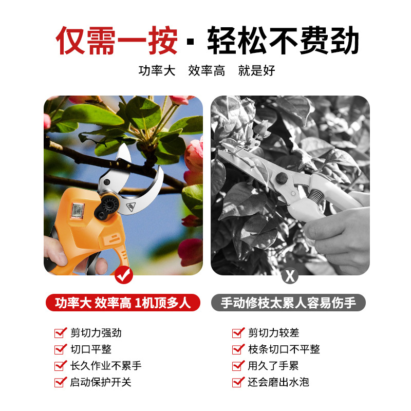 电动剪刀果树充电式电动修枝剪锂电高枝剪树枝园林粗枝加长杆电剪