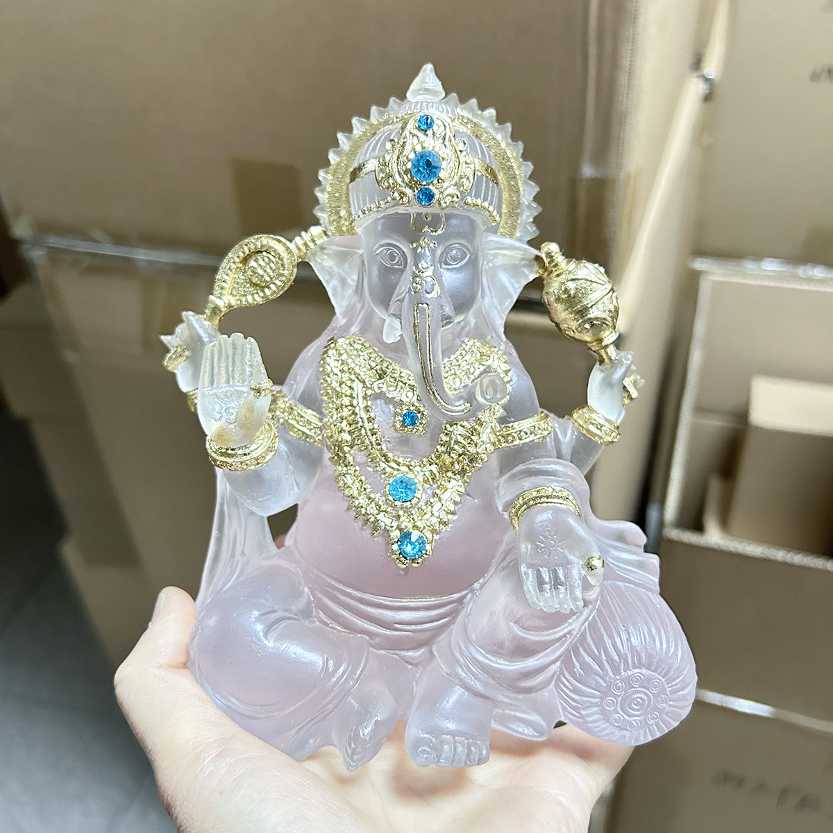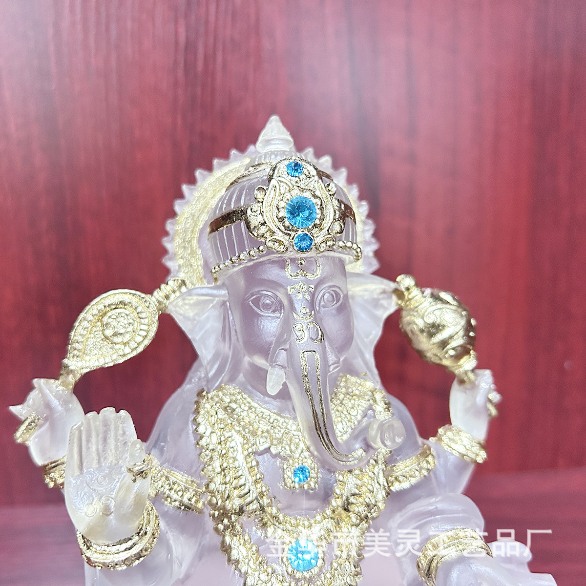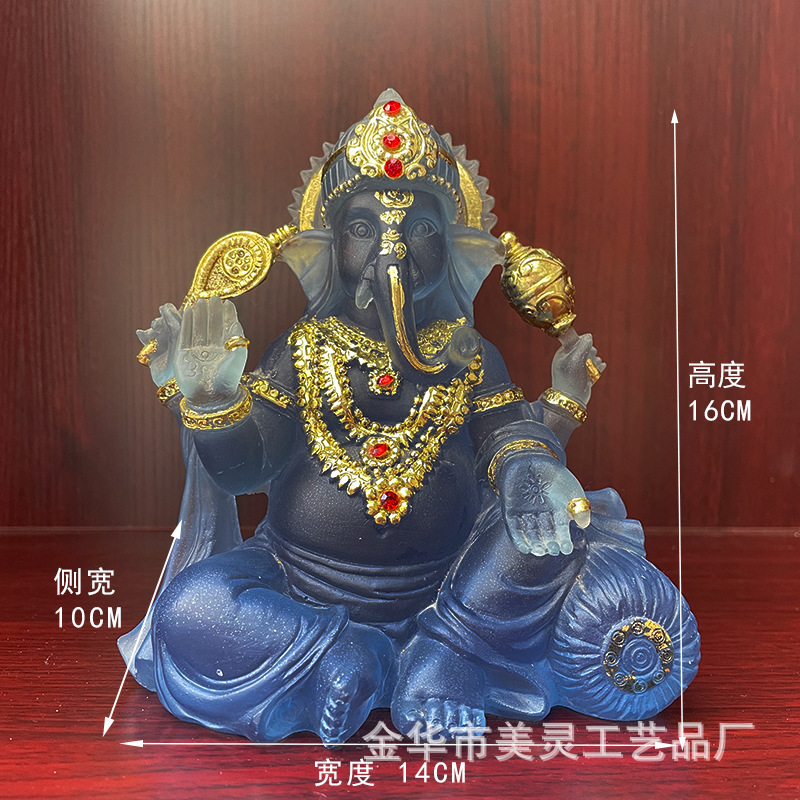 象神印度象鼻财神佛像水琉璃摆件贴金箔泰式印度树脂大箱跨境货源