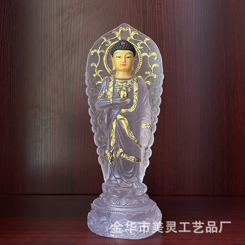 佛像批发阿弥陀佛站立佛释迦牟尼佛树脂工艺水琉璃摆件可一件代发