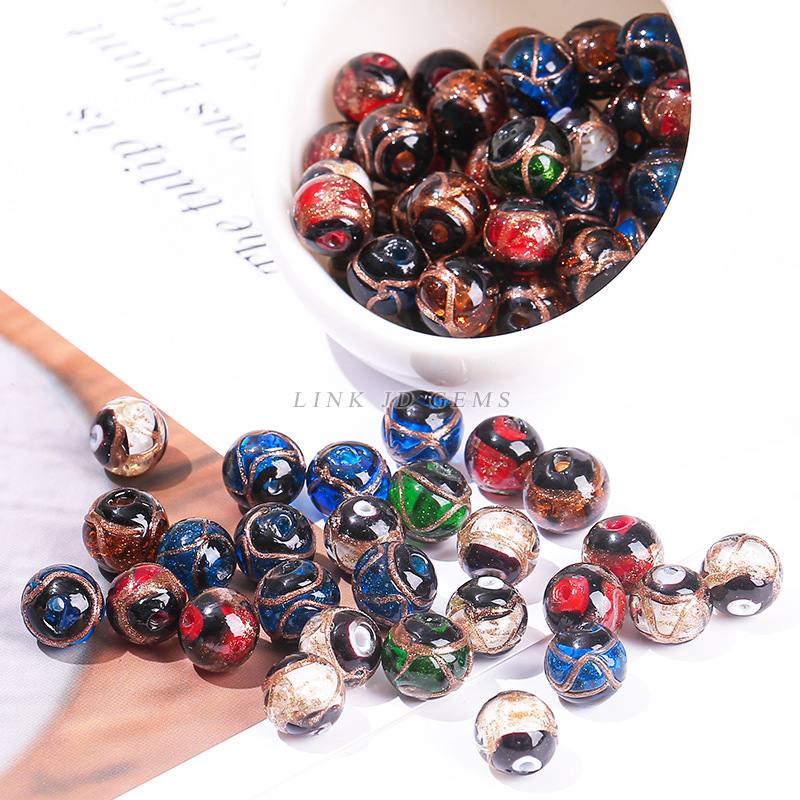 晶德珠宝 香灰琉璃珠古法金丝琉璃圆珠串珠diy饰品配件玻璃珠批发