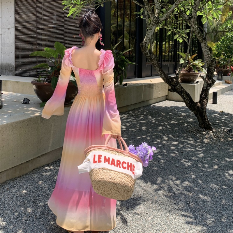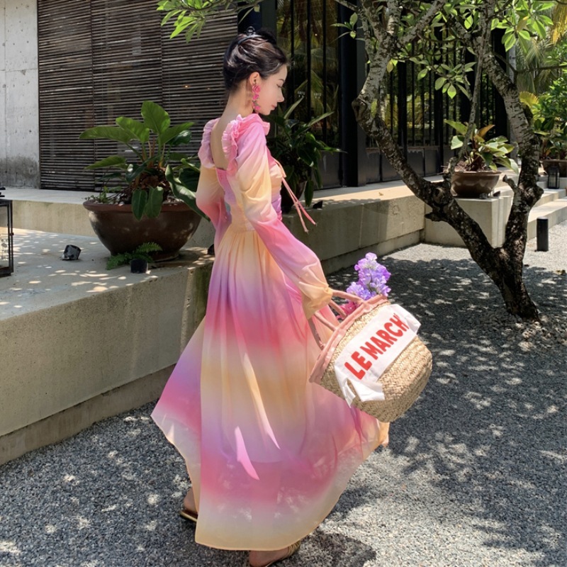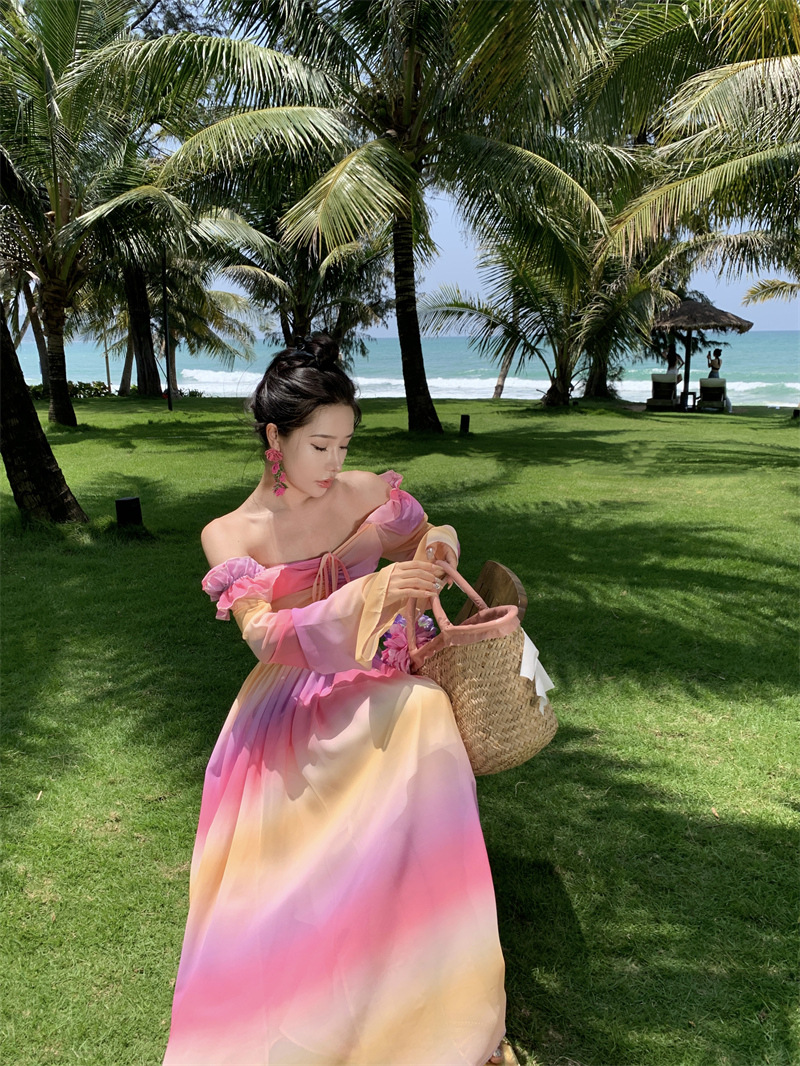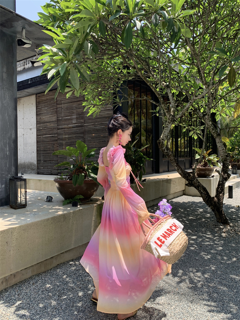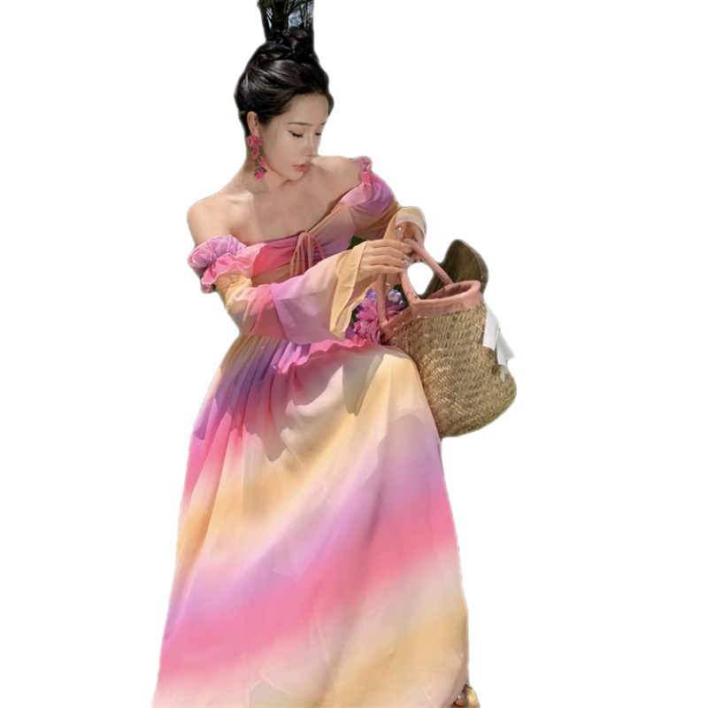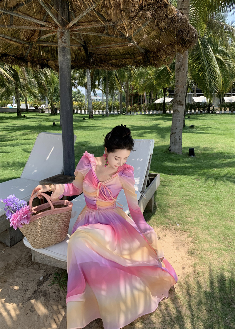 彩虹氛围感芭蕾舞会气质文艺超显瘦芭蕾感度假仙气飘飘洋气连衣裙