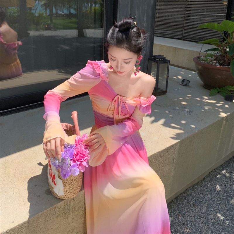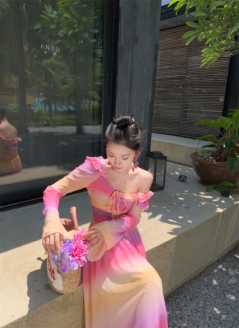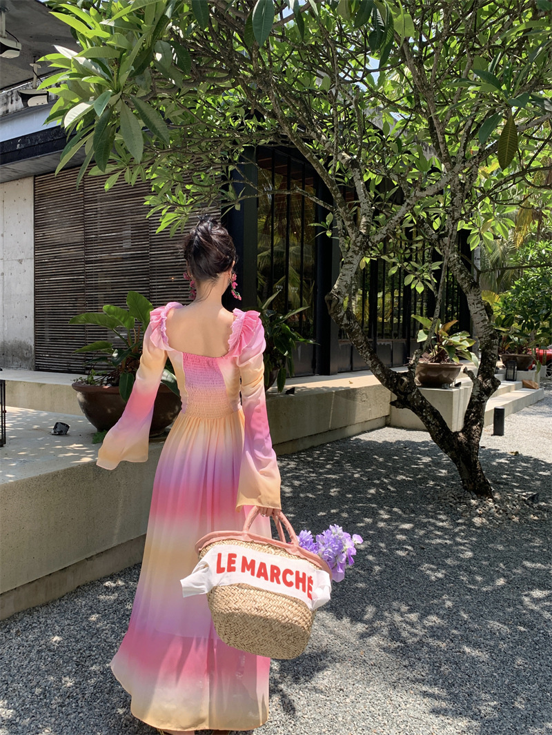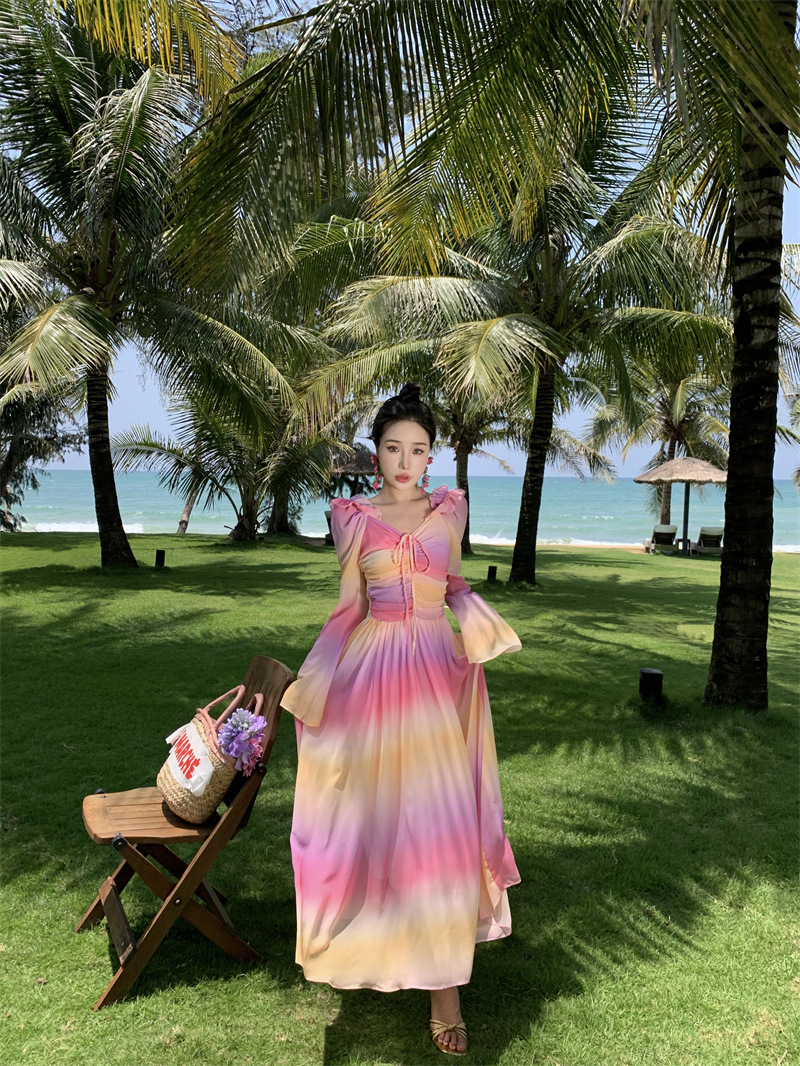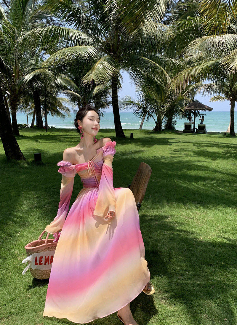 彩虹氛围感芭蕾舞会气质文艺超显瘦芭蕾感度假仙气飘飘洋气连衣裙
