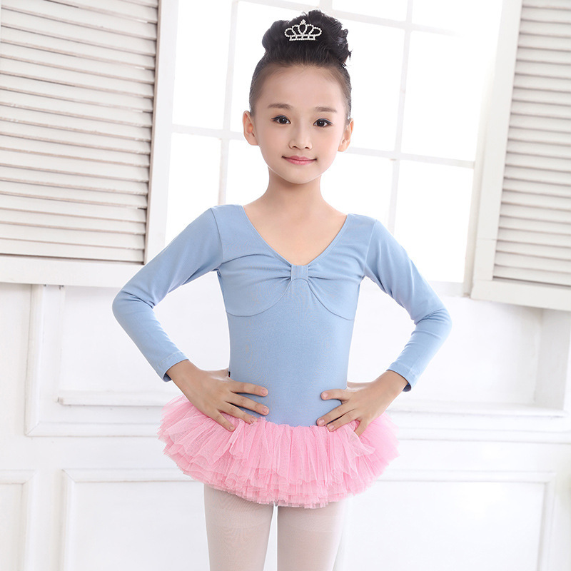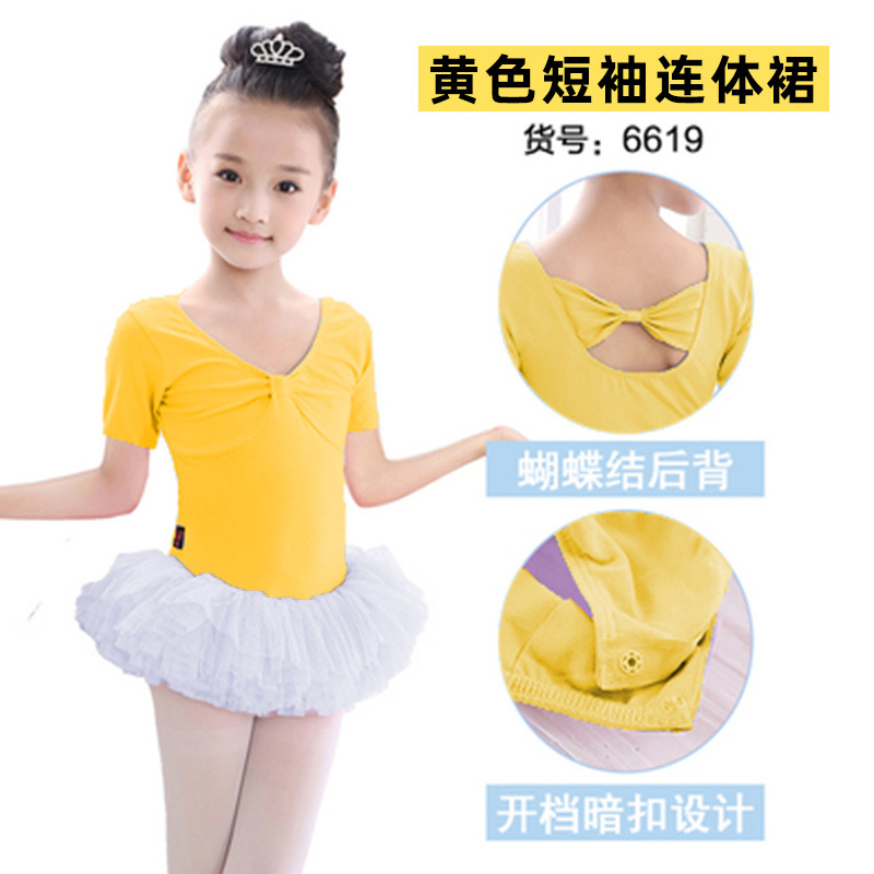 儿童舞蹈服装女童练功服夏季短袖蓬蓬裙棉吊带舞蹈裙少儿芭蕾舞裙