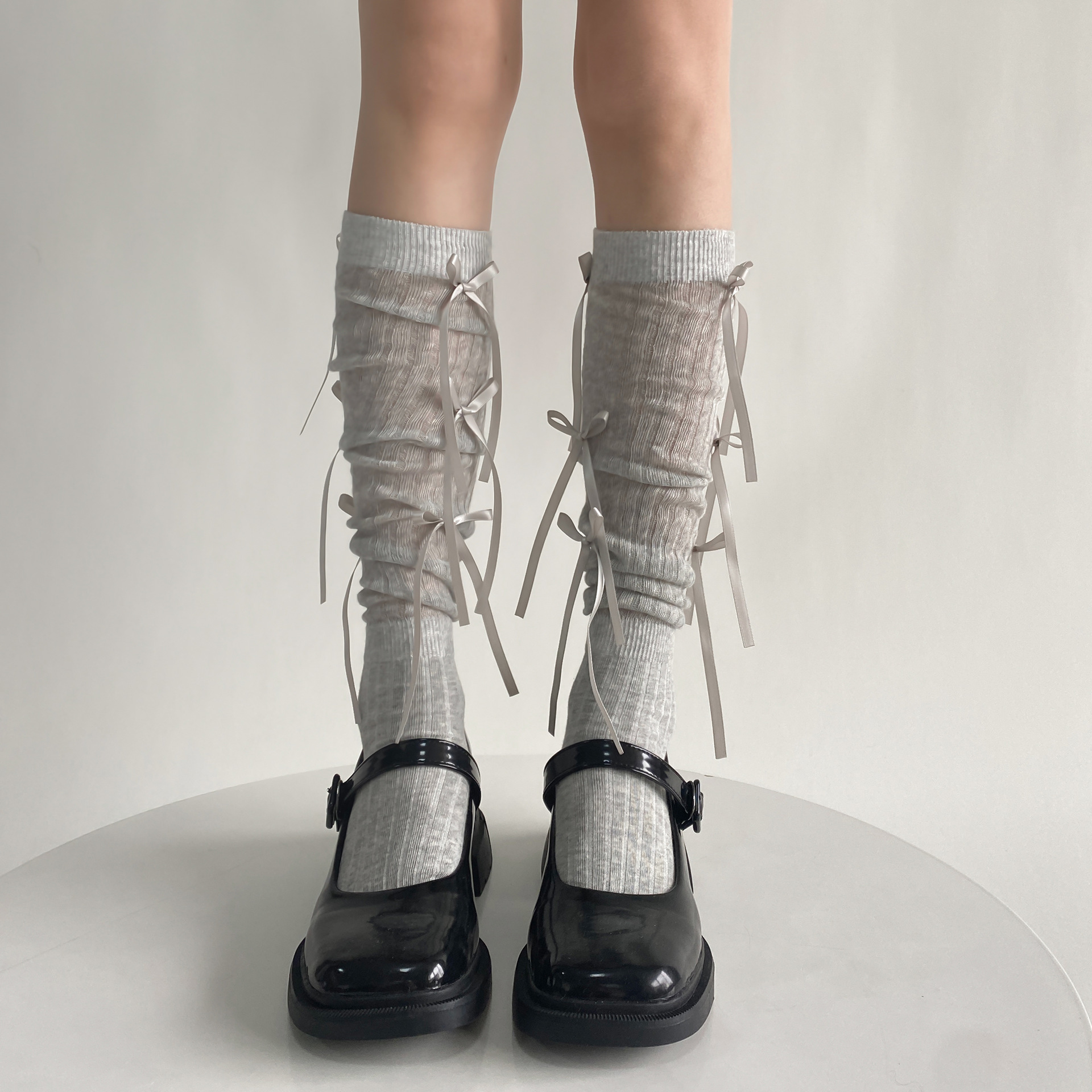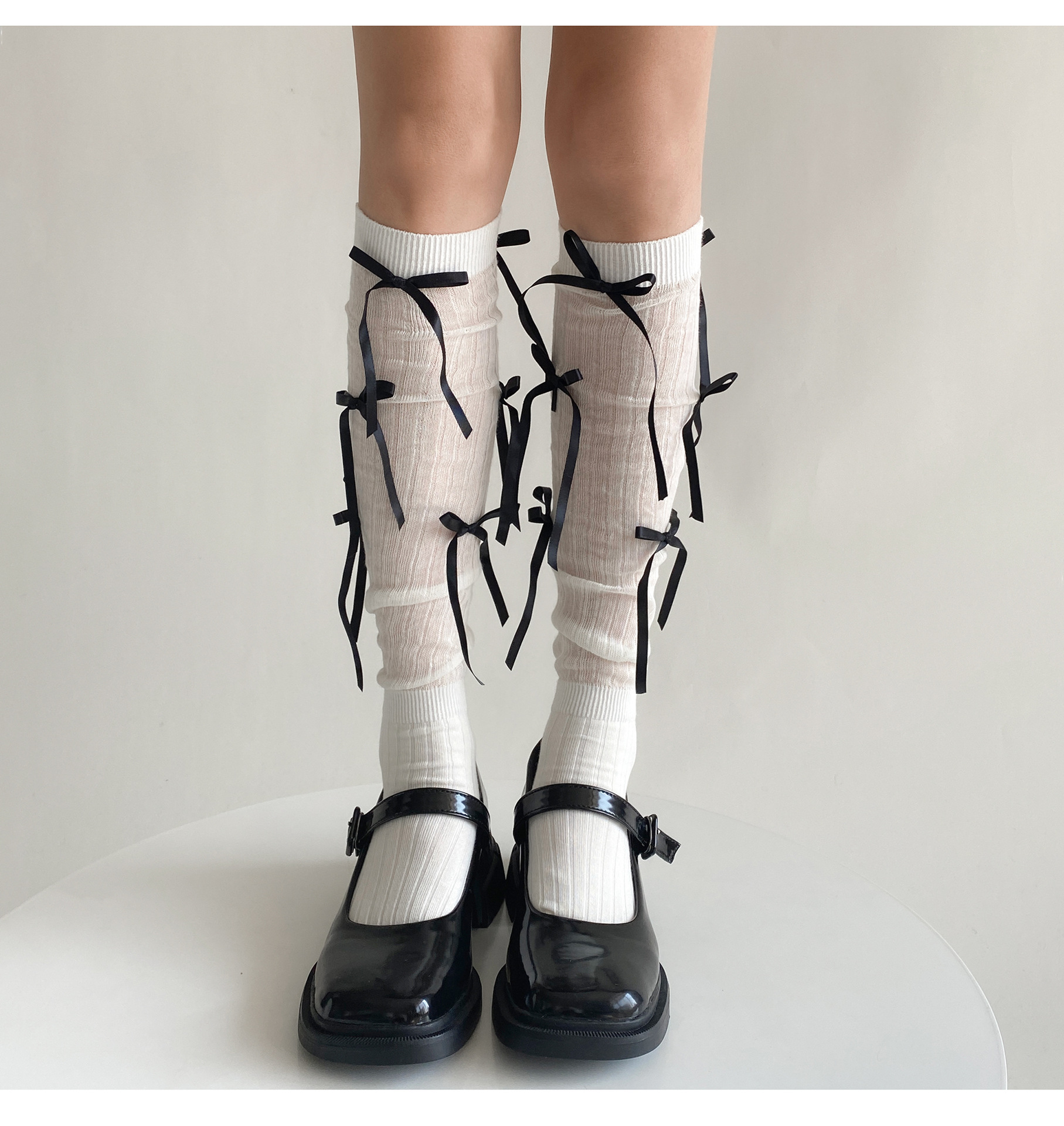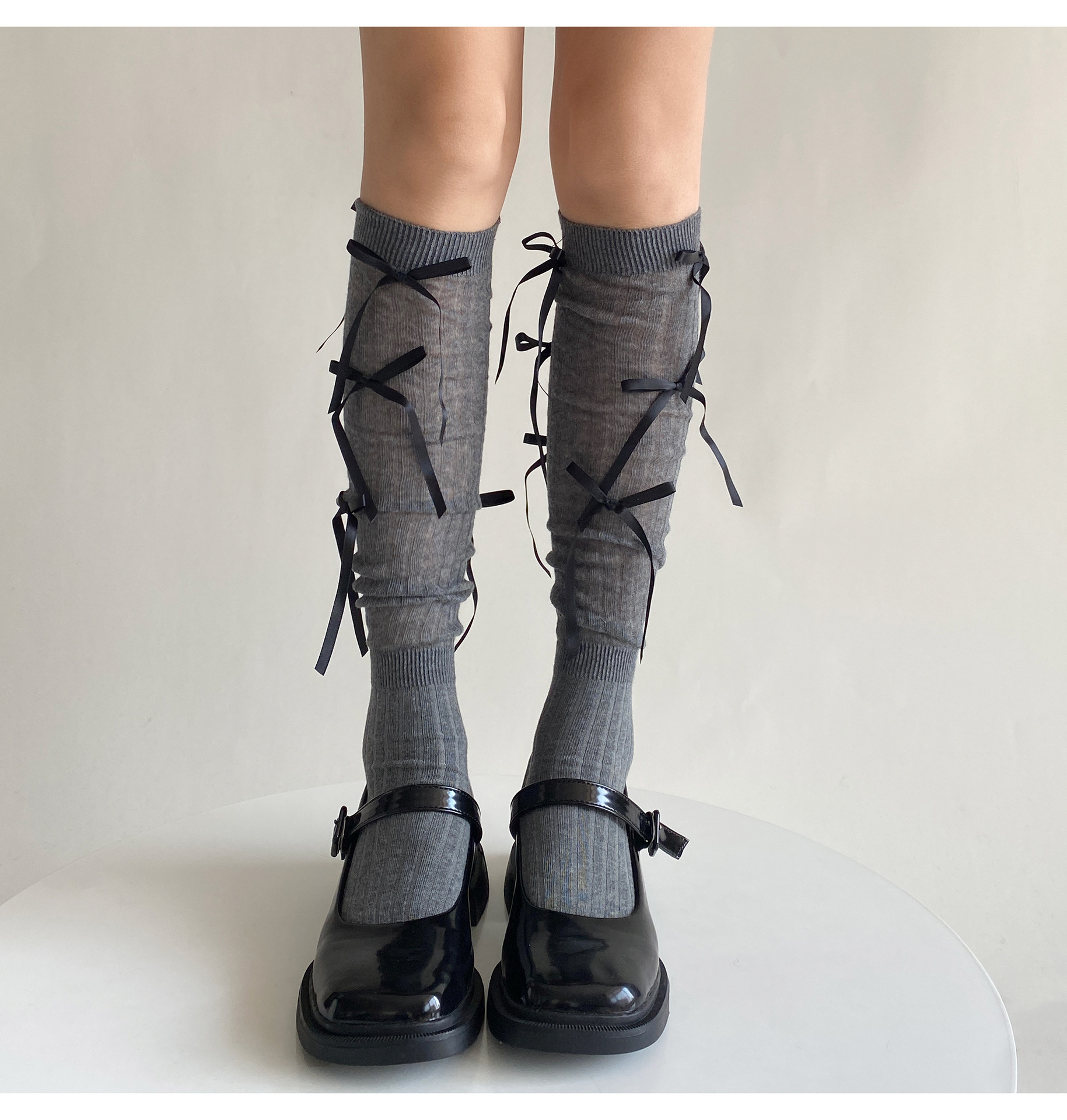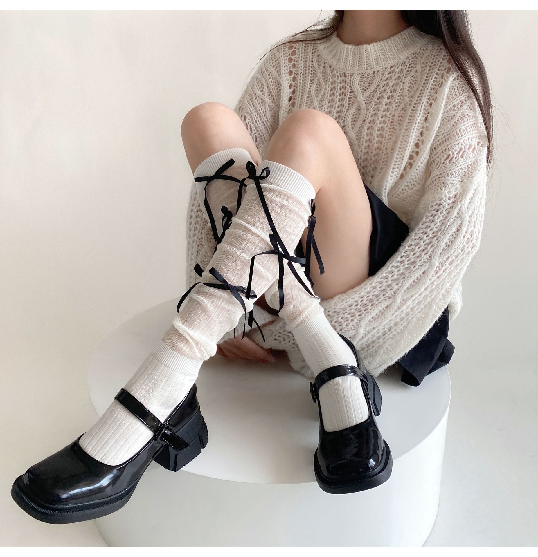 芭蕾风飘带蝴蝶结过膝袜女春秋小众拼接学院风jk堆堆袜甜美小腿袜