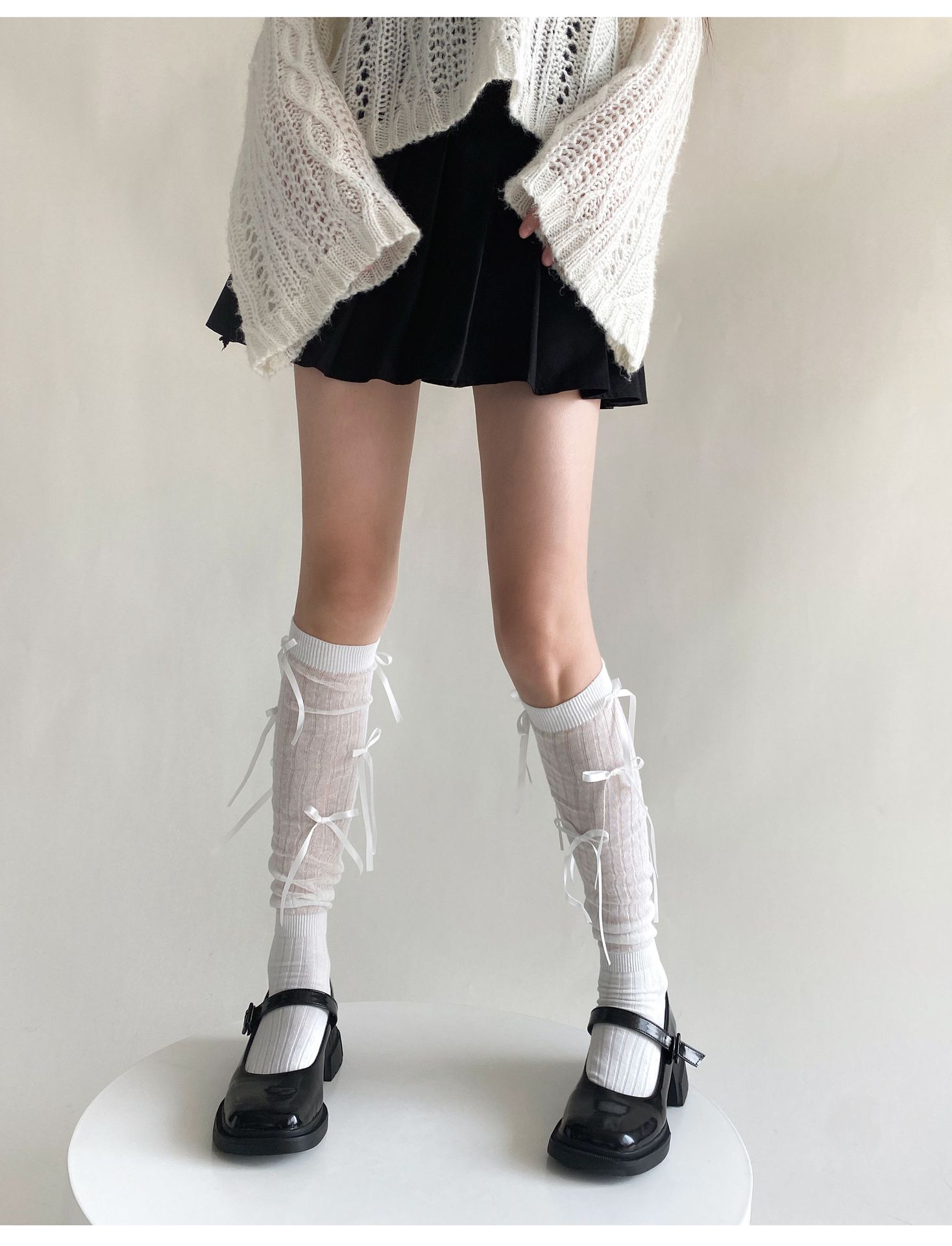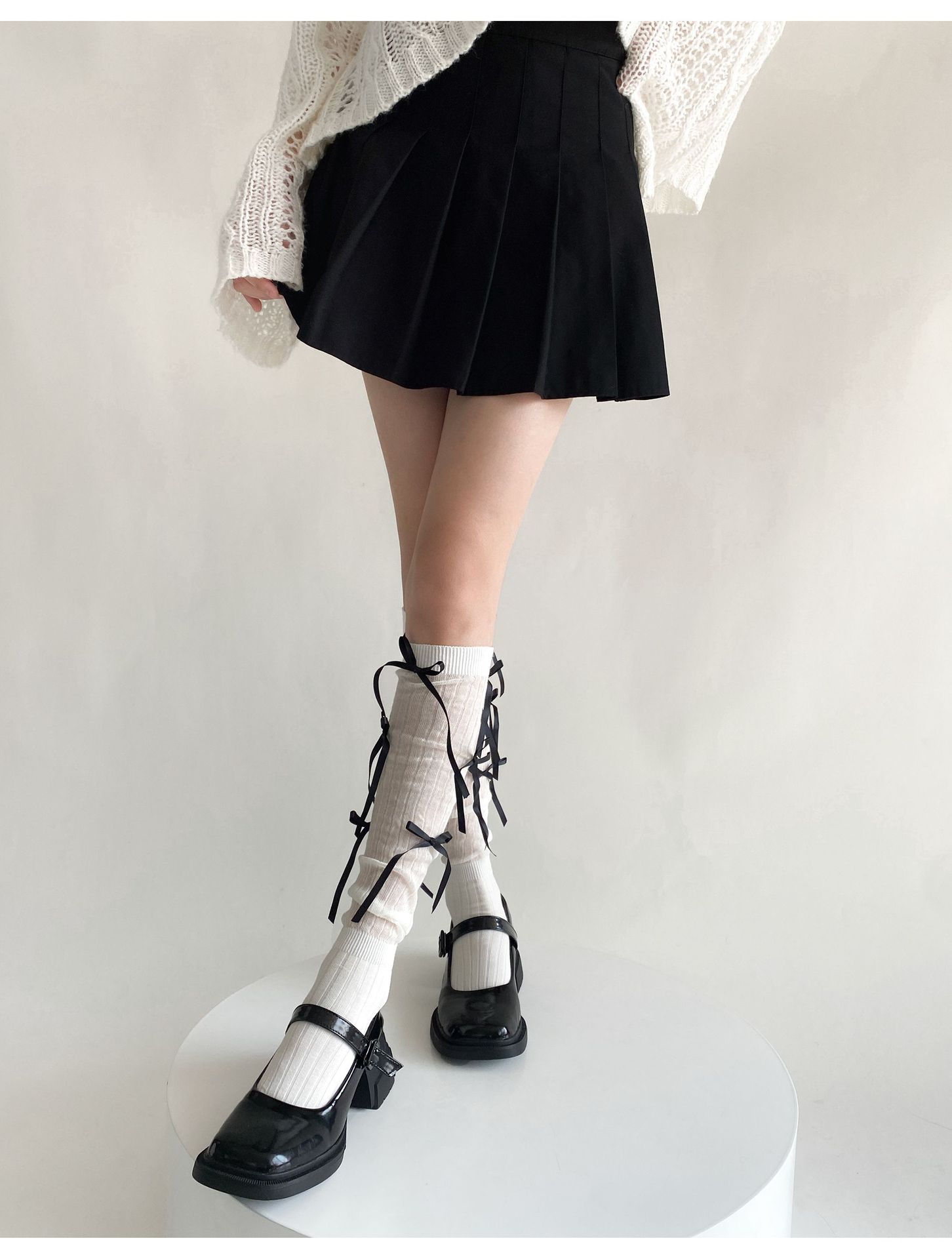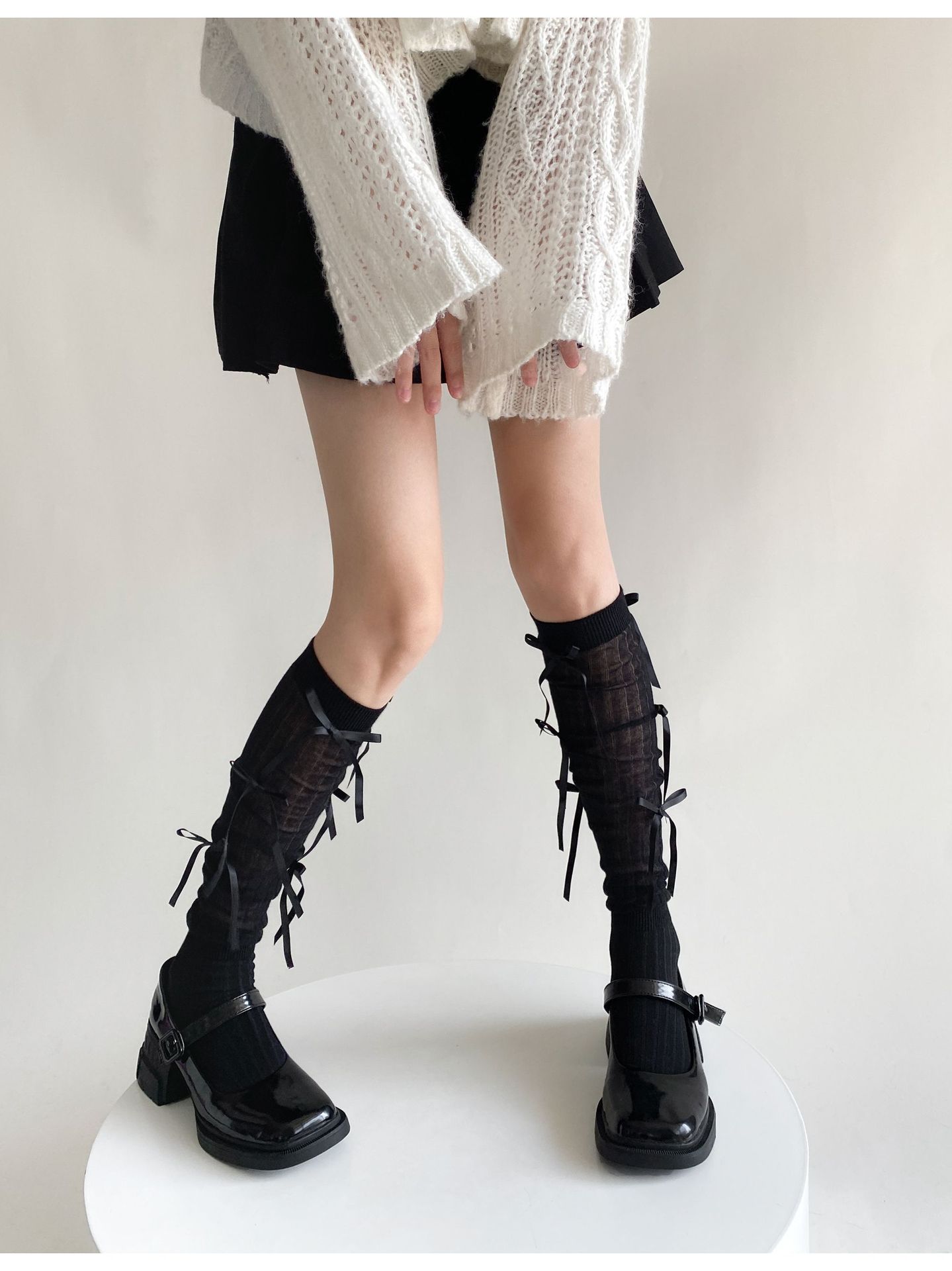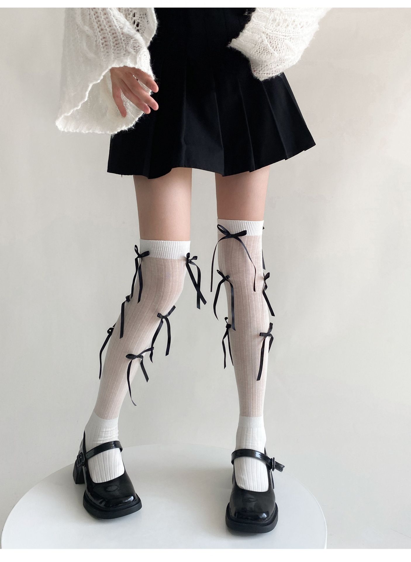 芭蕾风飘带蝴蝶结过膝袜女春秋小众拼接学院风jk堆堆袜甜美小腿袜