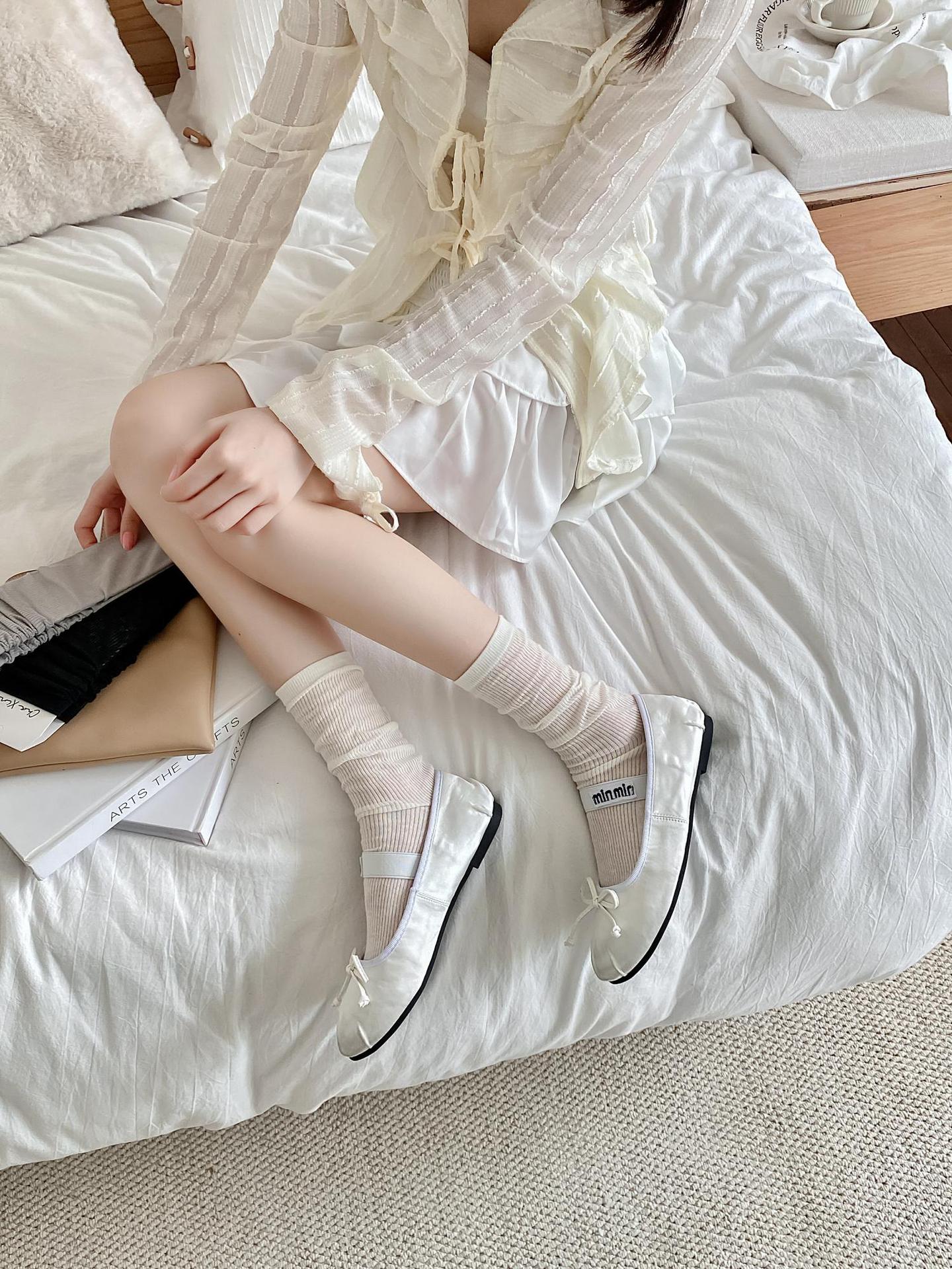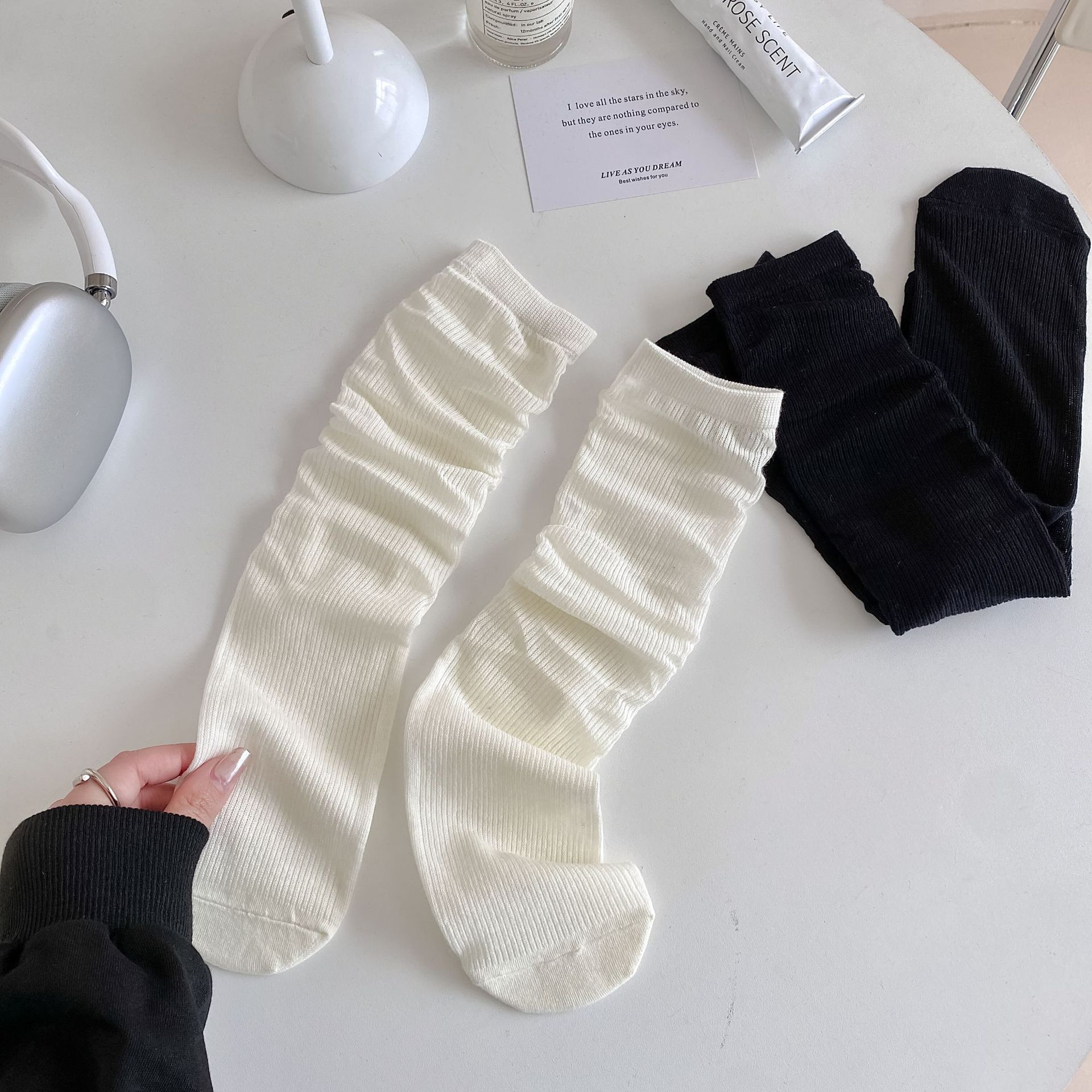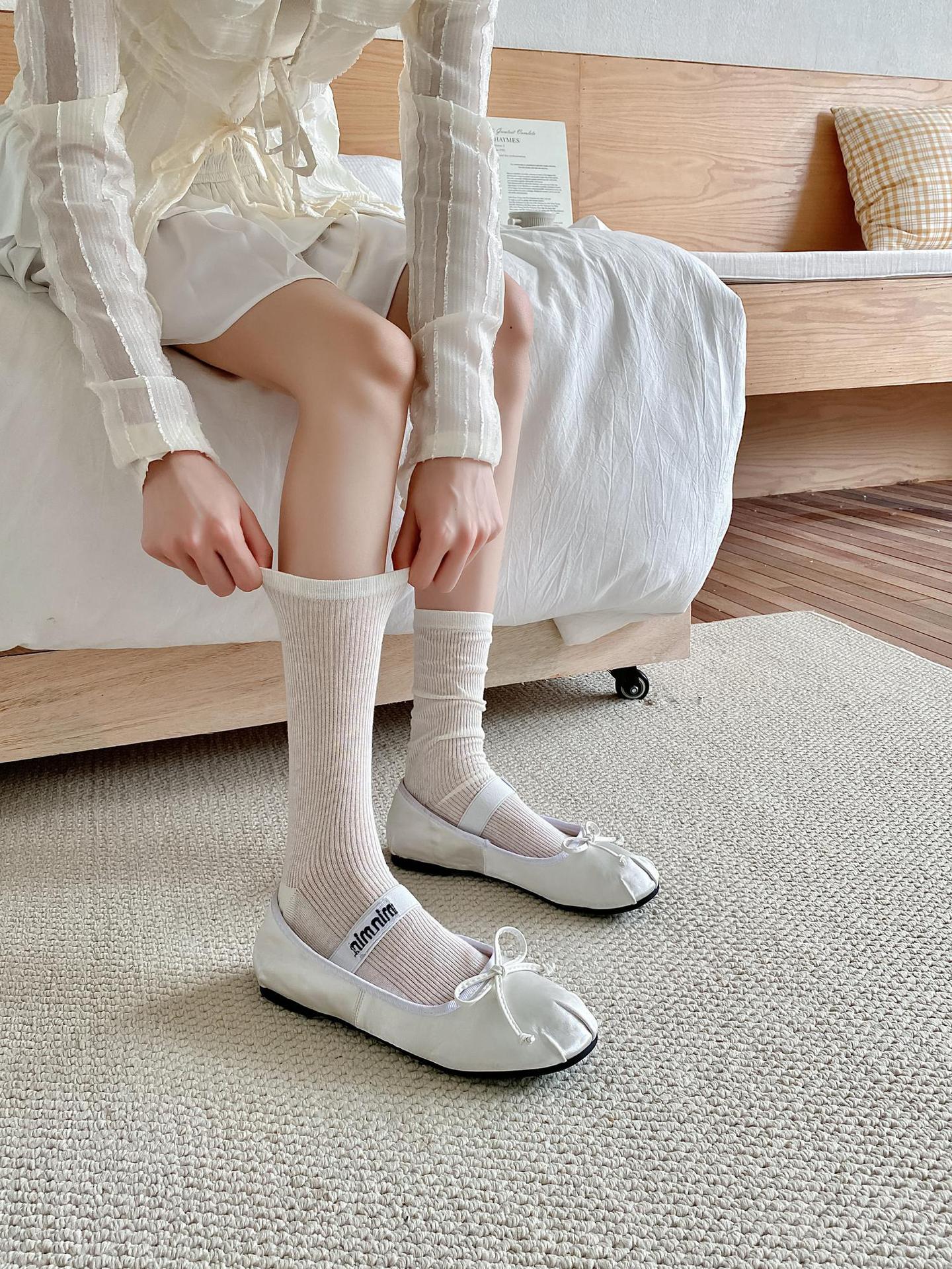 夏季薄款中筒袜日系ins潮芭蕾风法式乐福鞋纯棉夏天长袜堆堆袜女