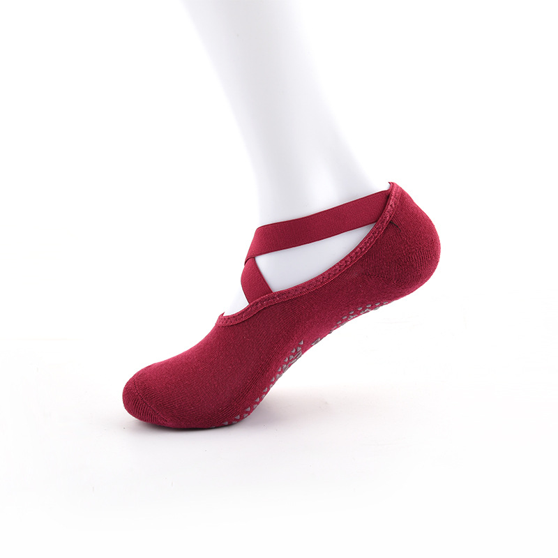 跨境 防滑交叉瑜伽袜芭蕾普拉提 运动点胶毛圈袜毛巾底 工厂直发