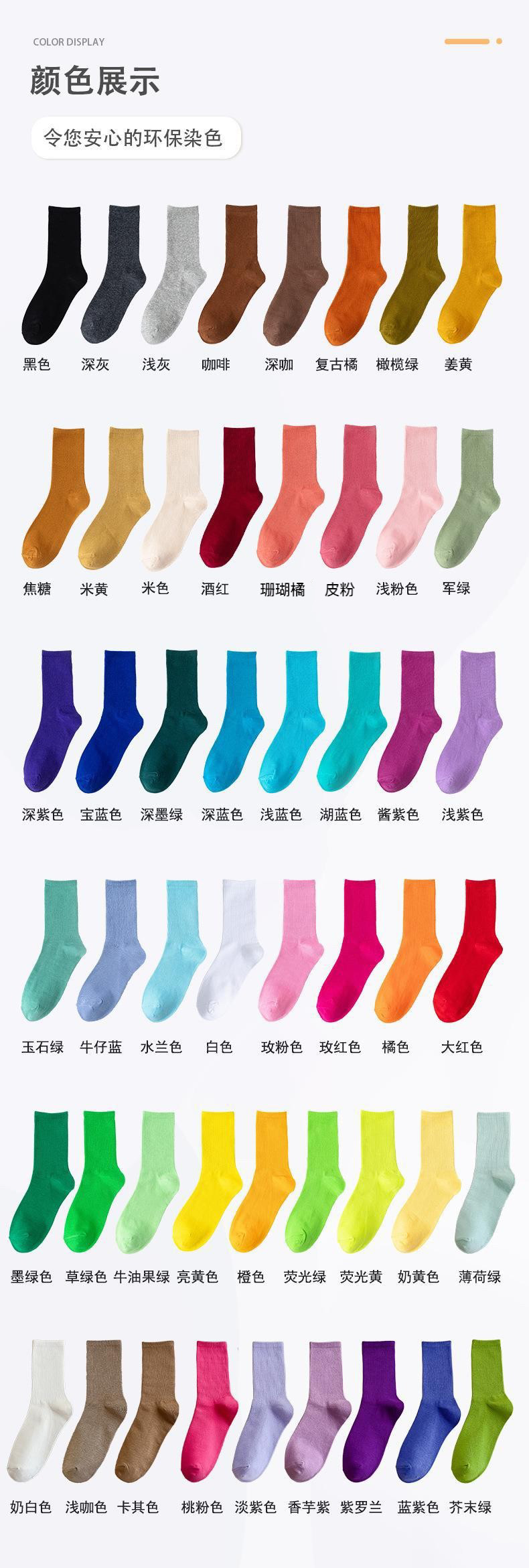 彩色袜子糖果色春秋棉袜百搭堆堆袜运动舞蹈袜纯色袜高橡筋中筒袜