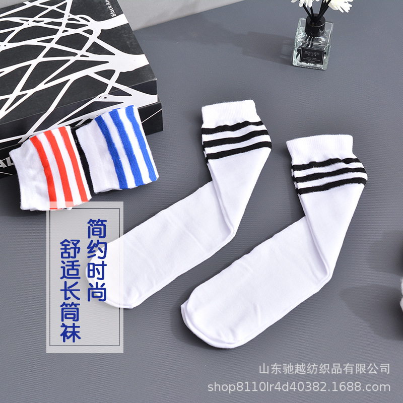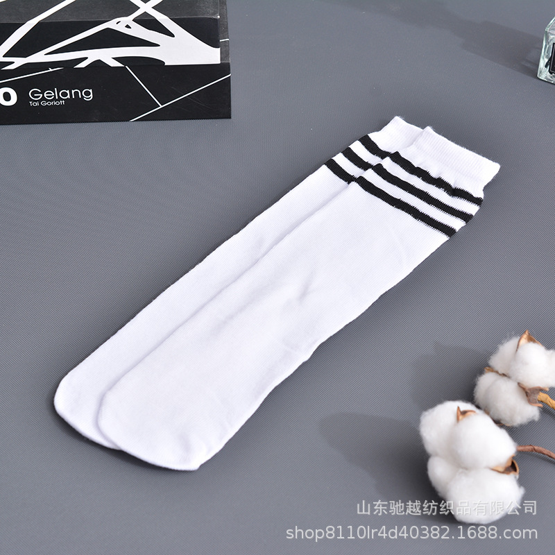 透气四季款中筒袜儿童舞蹈啦啦操表演透气白袜儿童三条杠条纹袜子