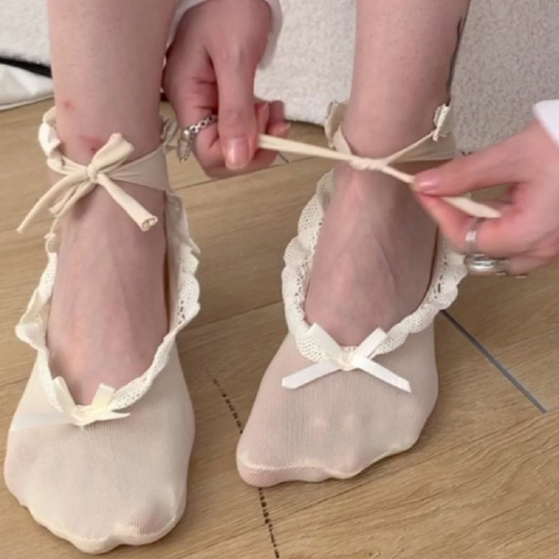 浅口袜子春秋款女蝴蝶结花边船袜夏天薄款芭蕾风隐形袜