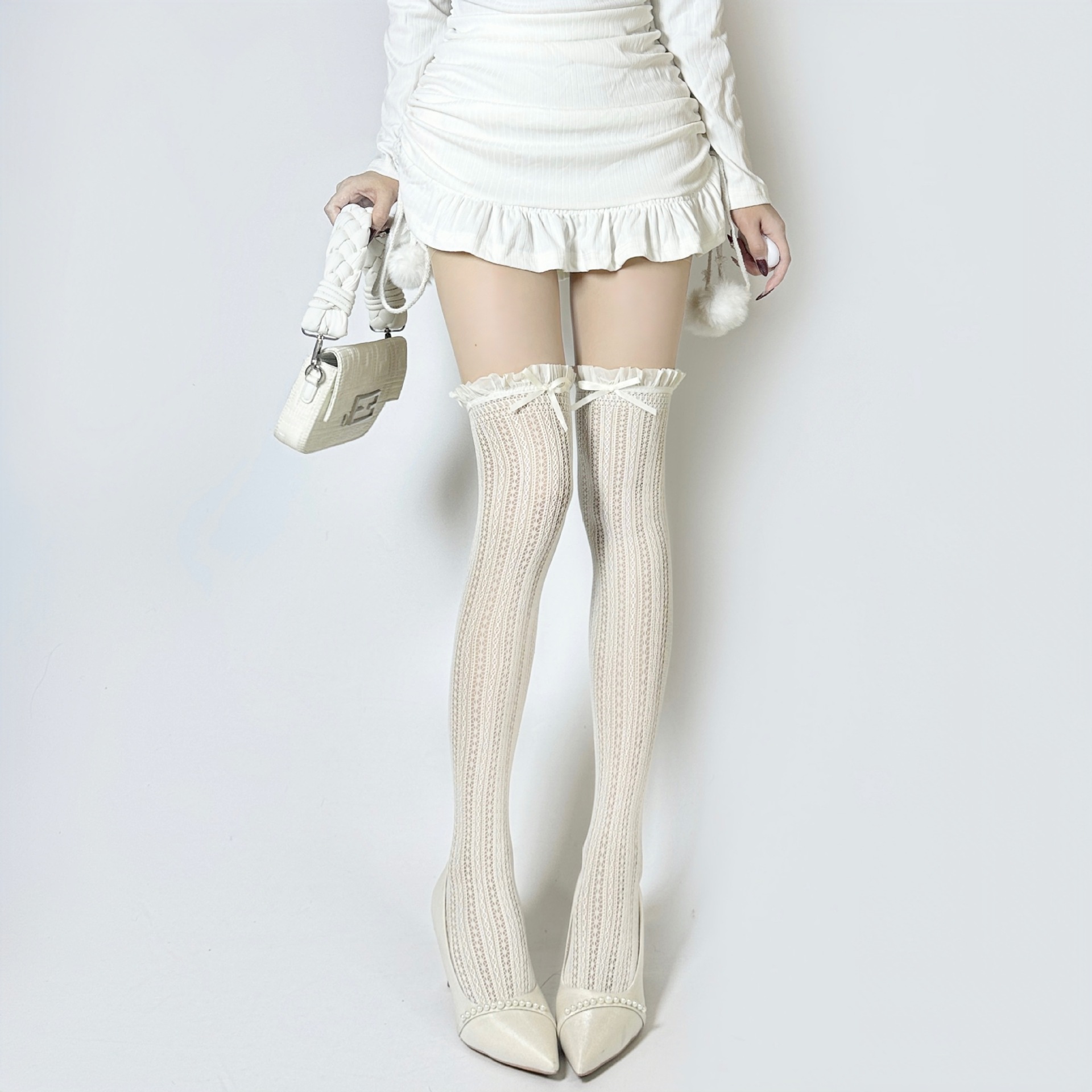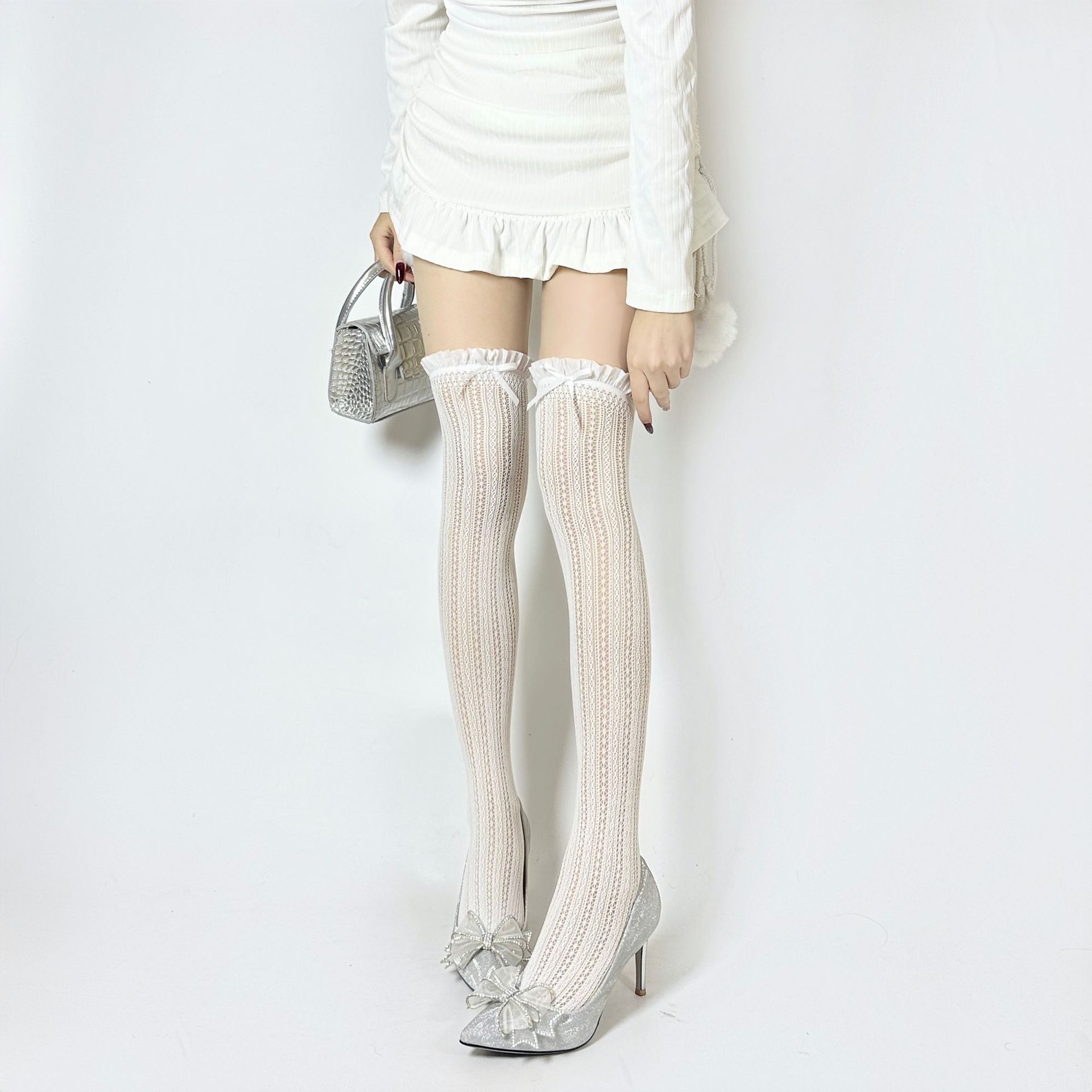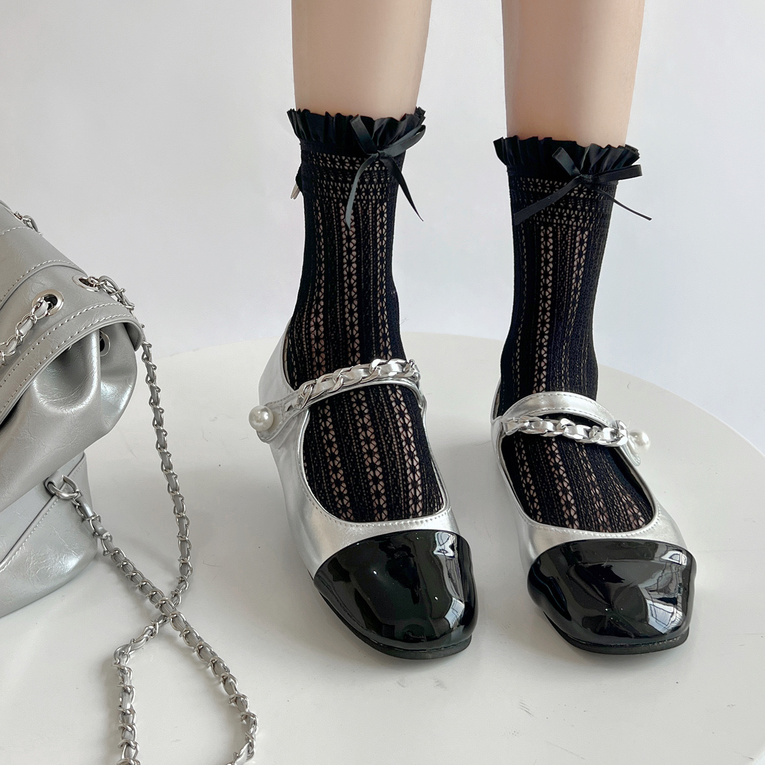玛丽珍蕾丝蝴蝶结花边袜夏季薄款网眼镂空短中筒堆堆袜子女芭蕾风