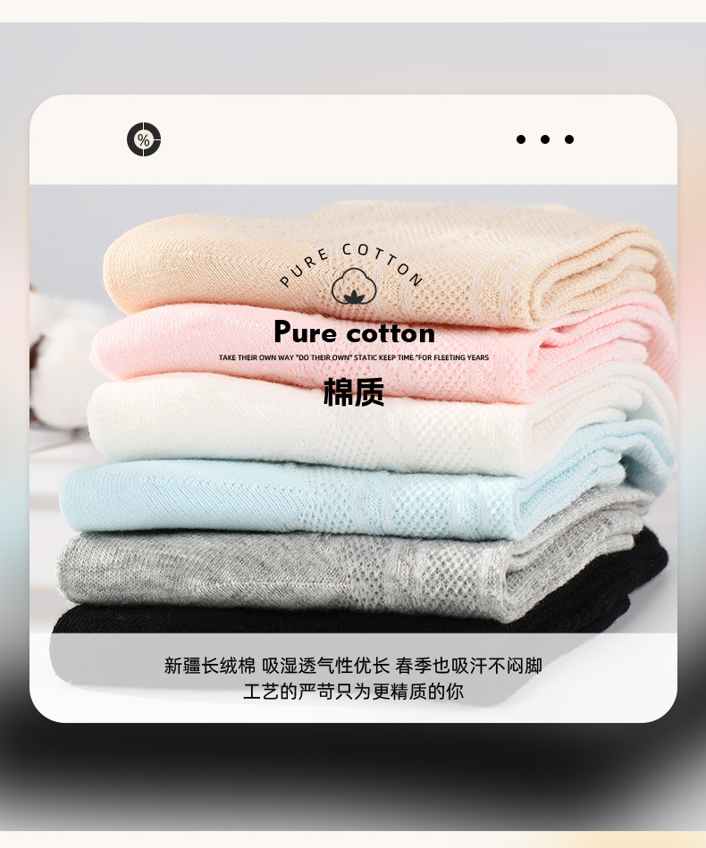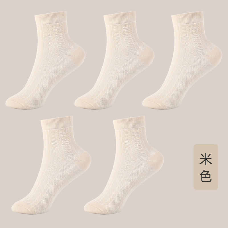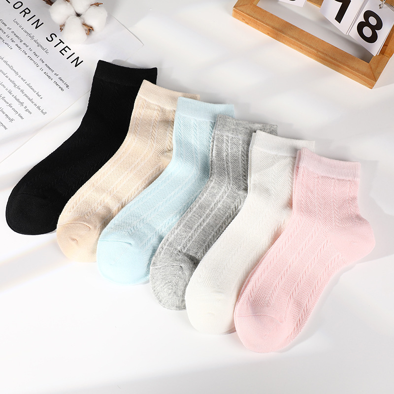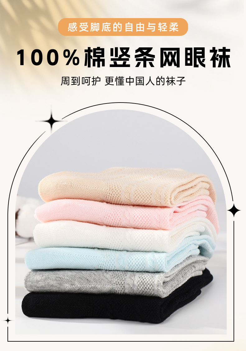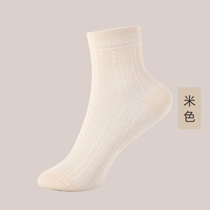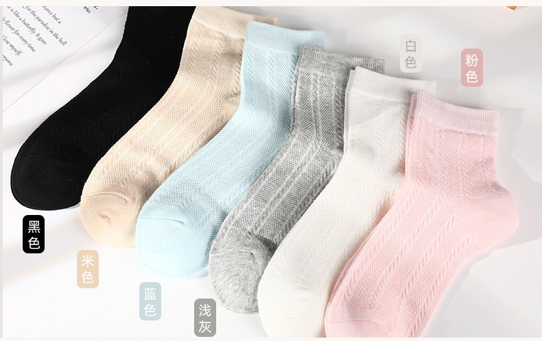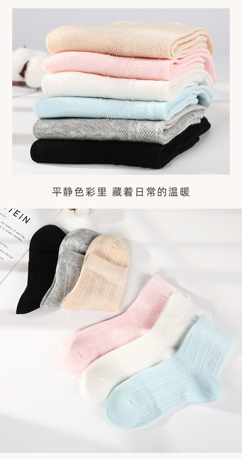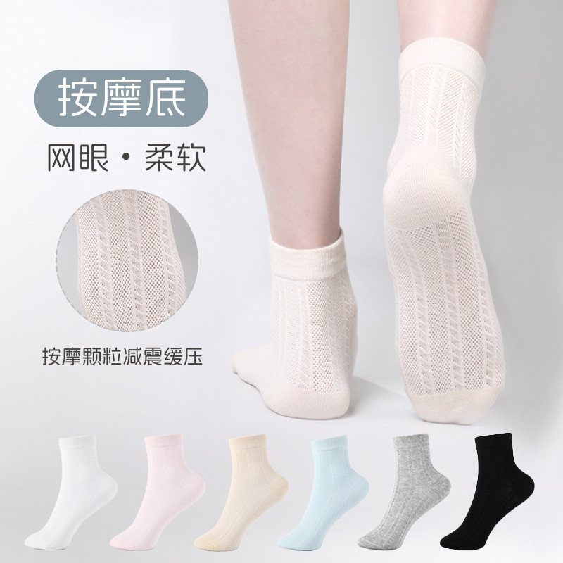 春夏新款中筒女袜 纯棉透气吸汗网眼休闲袜纯色中筒JK芭蕾风袜子