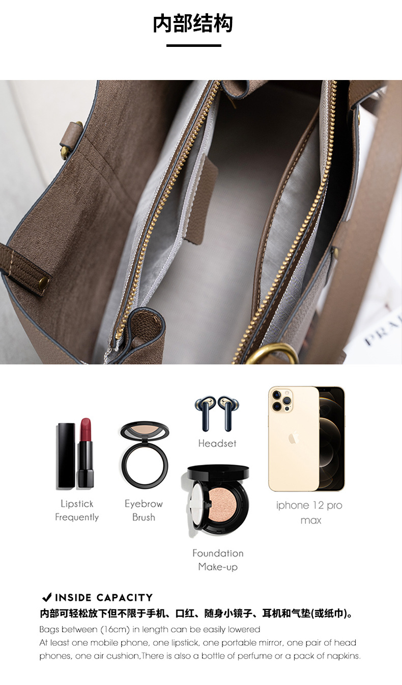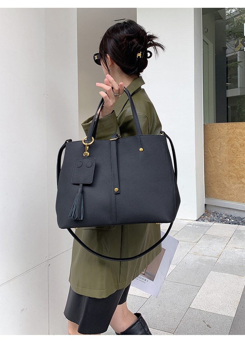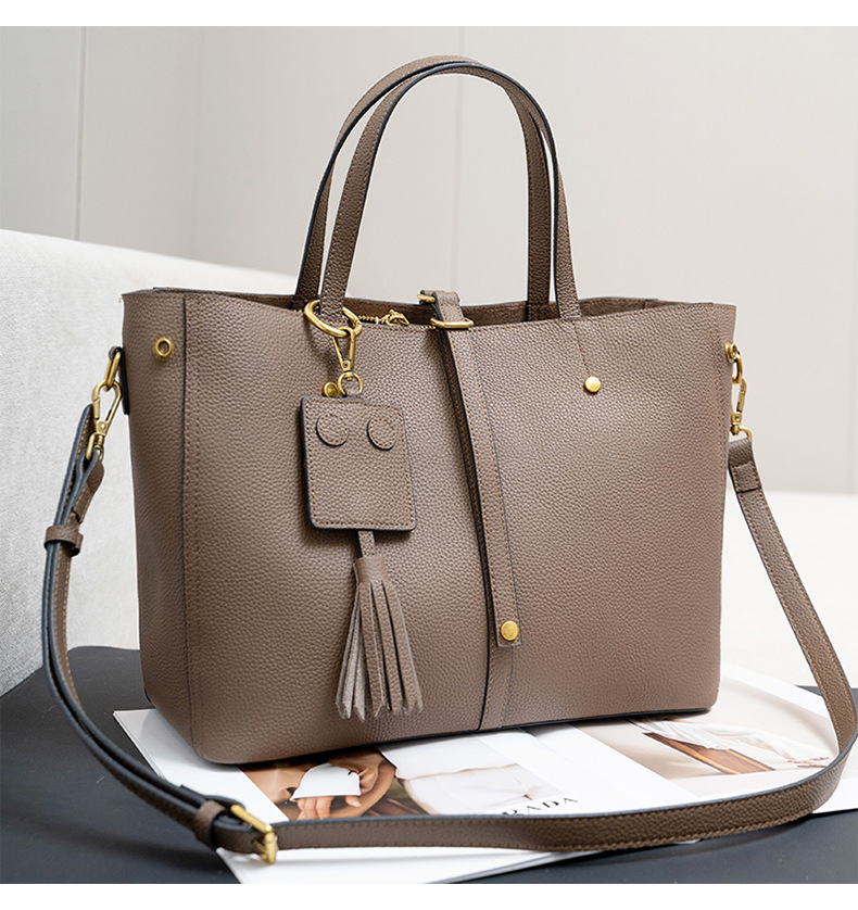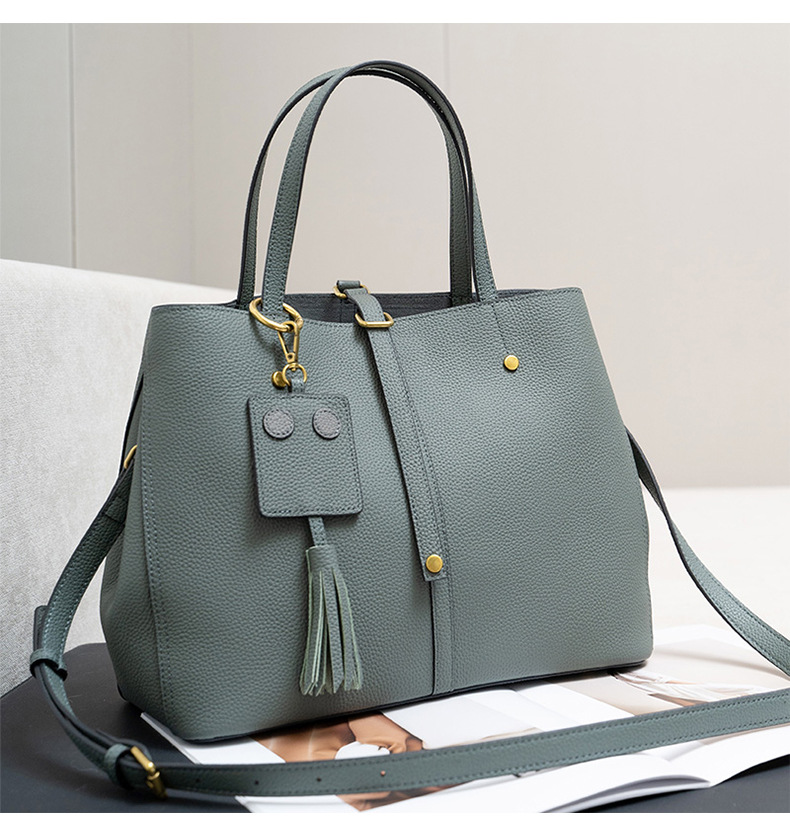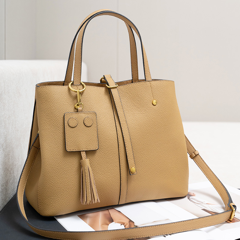 跨境专供真皮女包单肩斜挎包女通勤手提托特包大容量水桶包花园包
