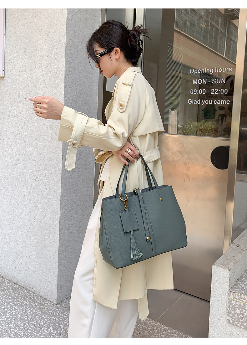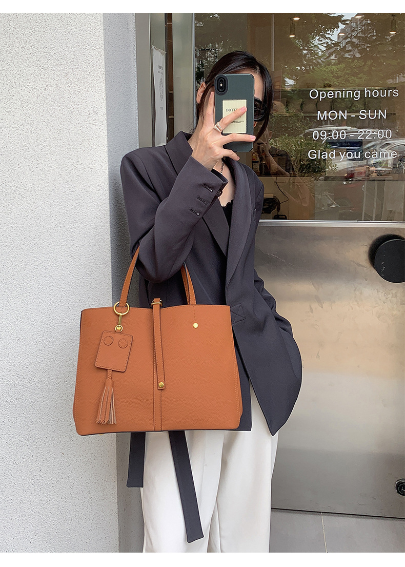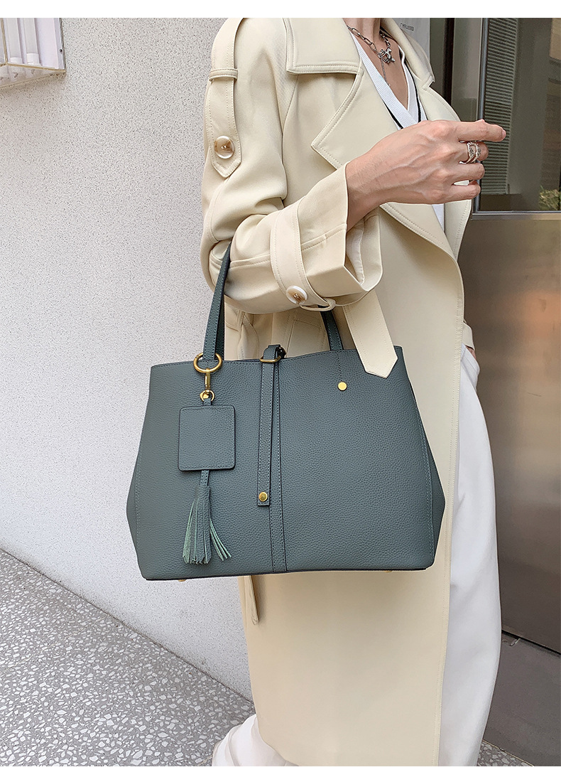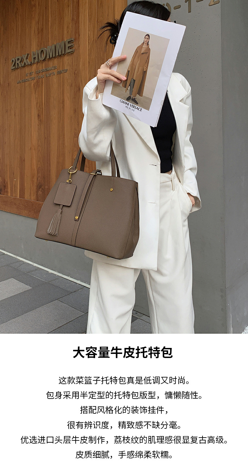 跨境专供真皮女包单肩斜挎包女通勤手提托特包大容量水桶包花园包
