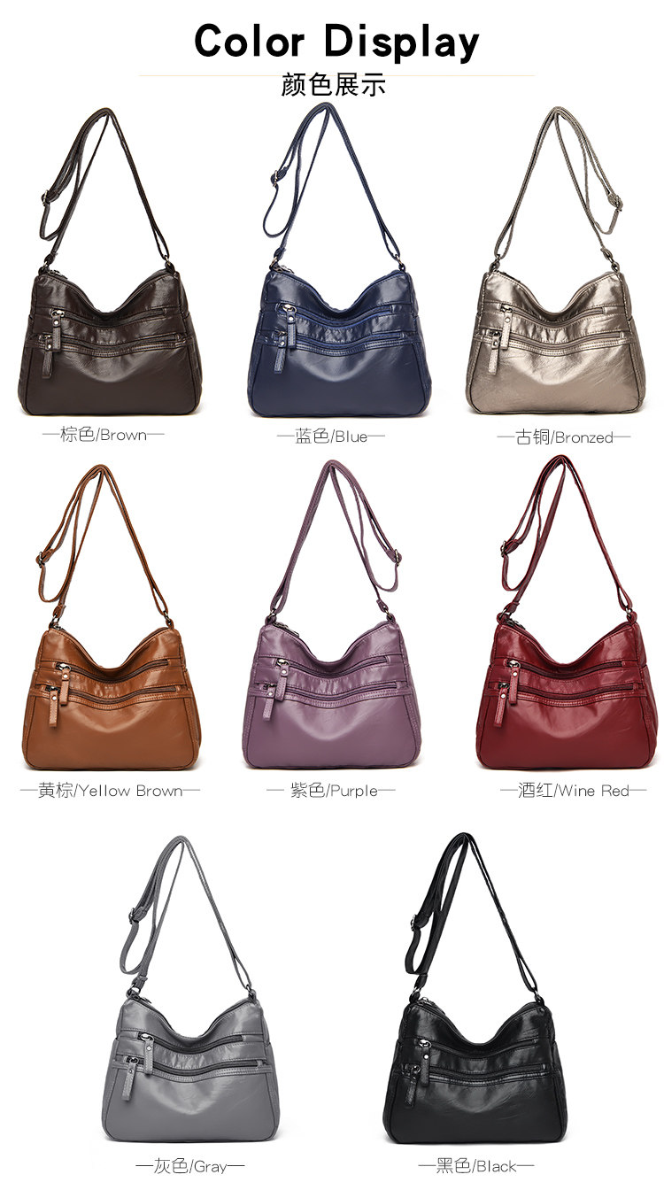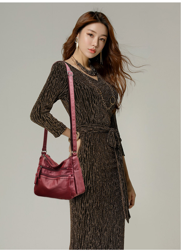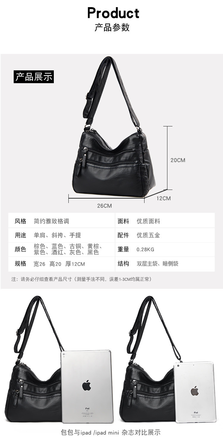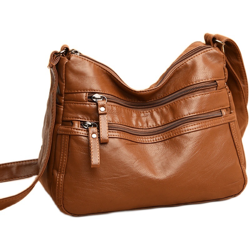 女士软皮妈妈包女大包多层斜背包2021新款水洗皮简约单肩斜挎包
