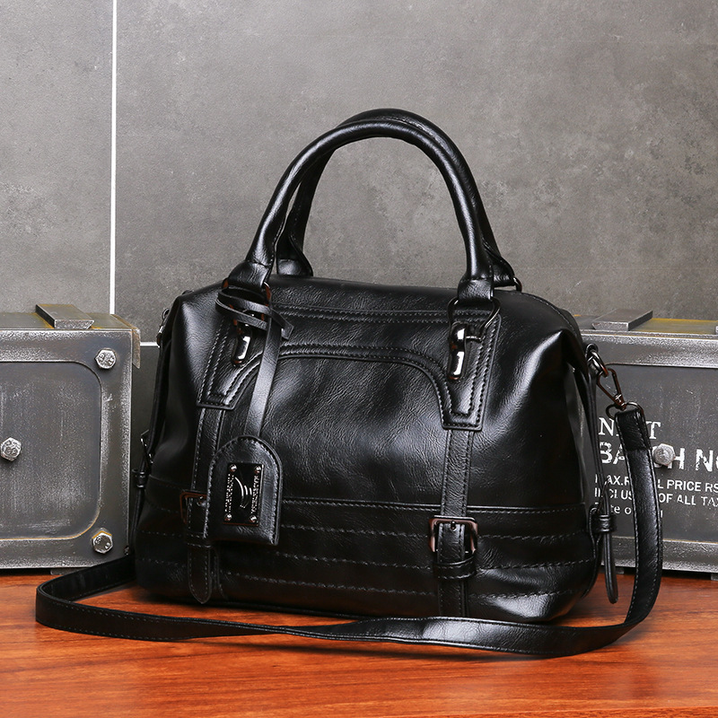 大容量真皮质感包包跨境油蜡皮波士顿包包女包手提包单肩斜跨包