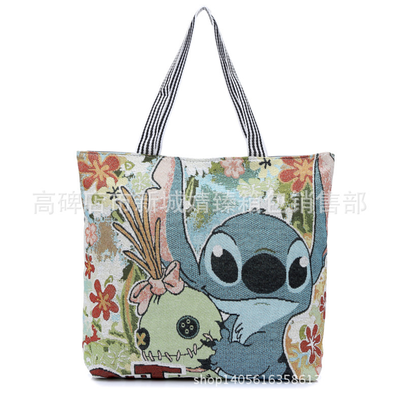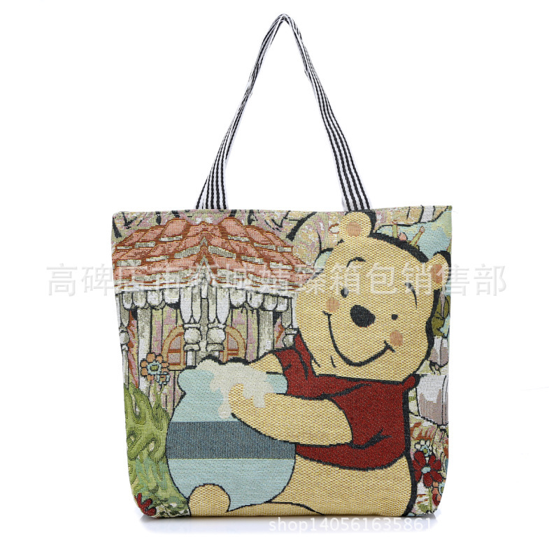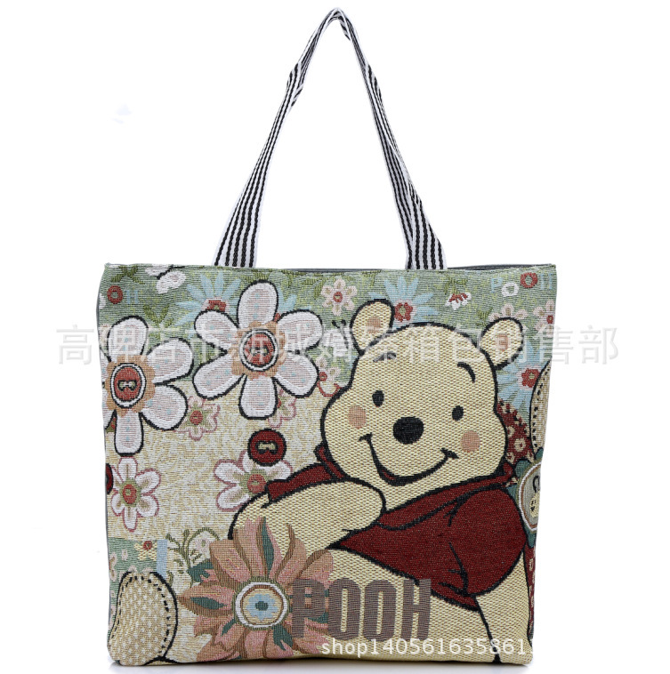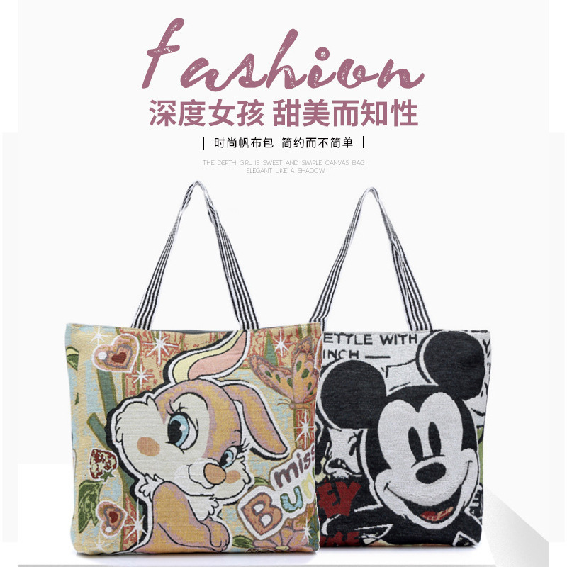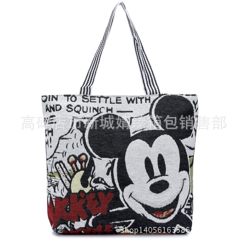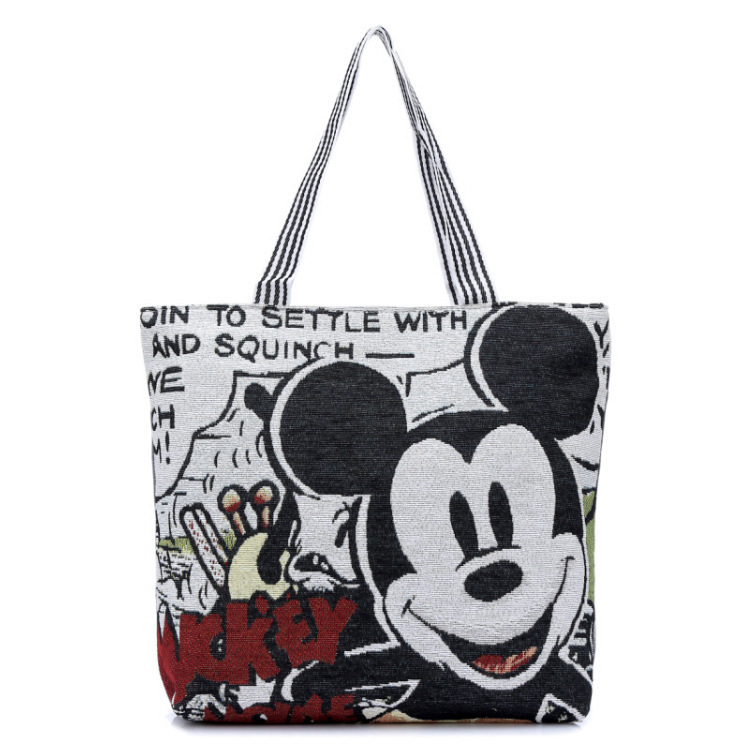 跨境单肩包女2023大容量购物袋时尚卡通印花通勤托特包手提帆布包