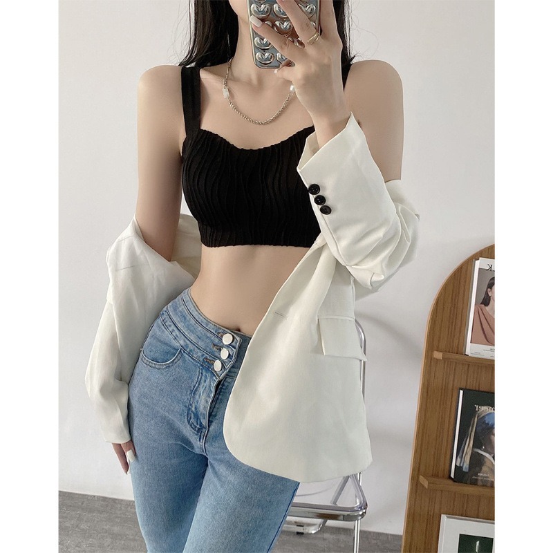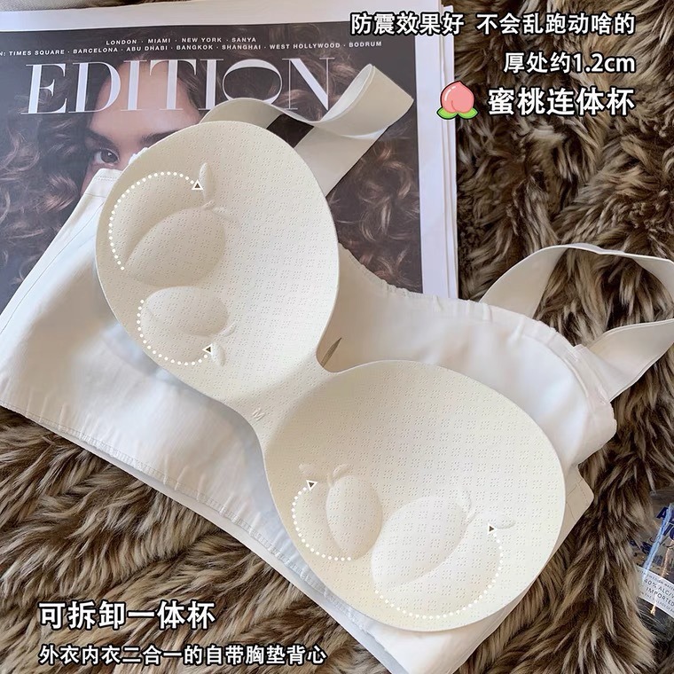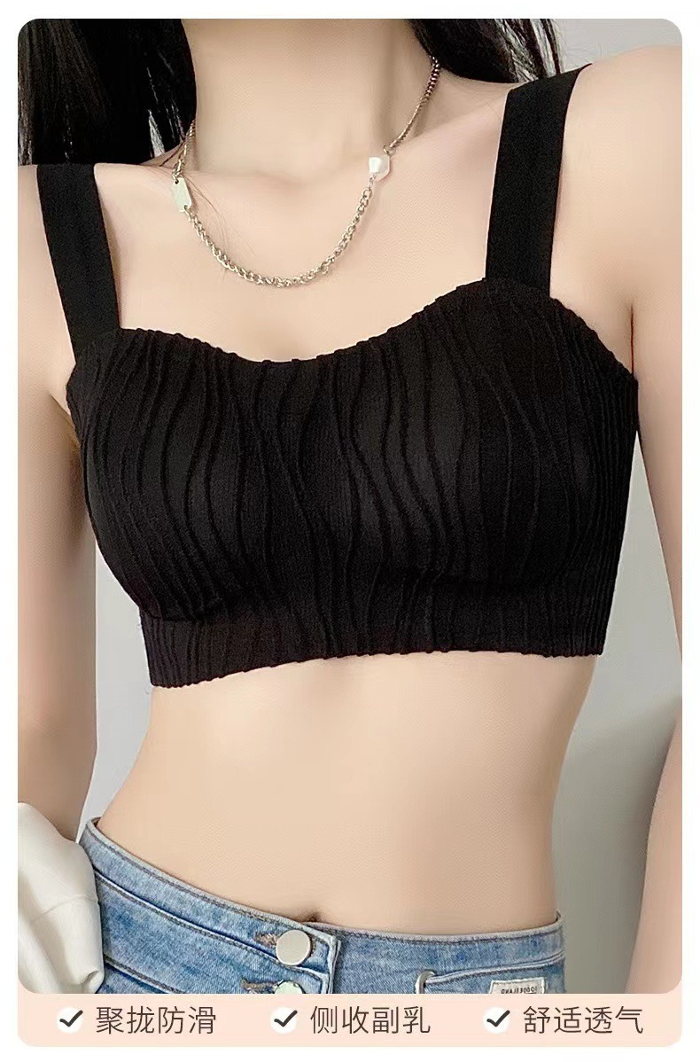 2024内衣女小胸聚拢无刚圈宽肩带套头背心式吊带运动美背一体胸罩