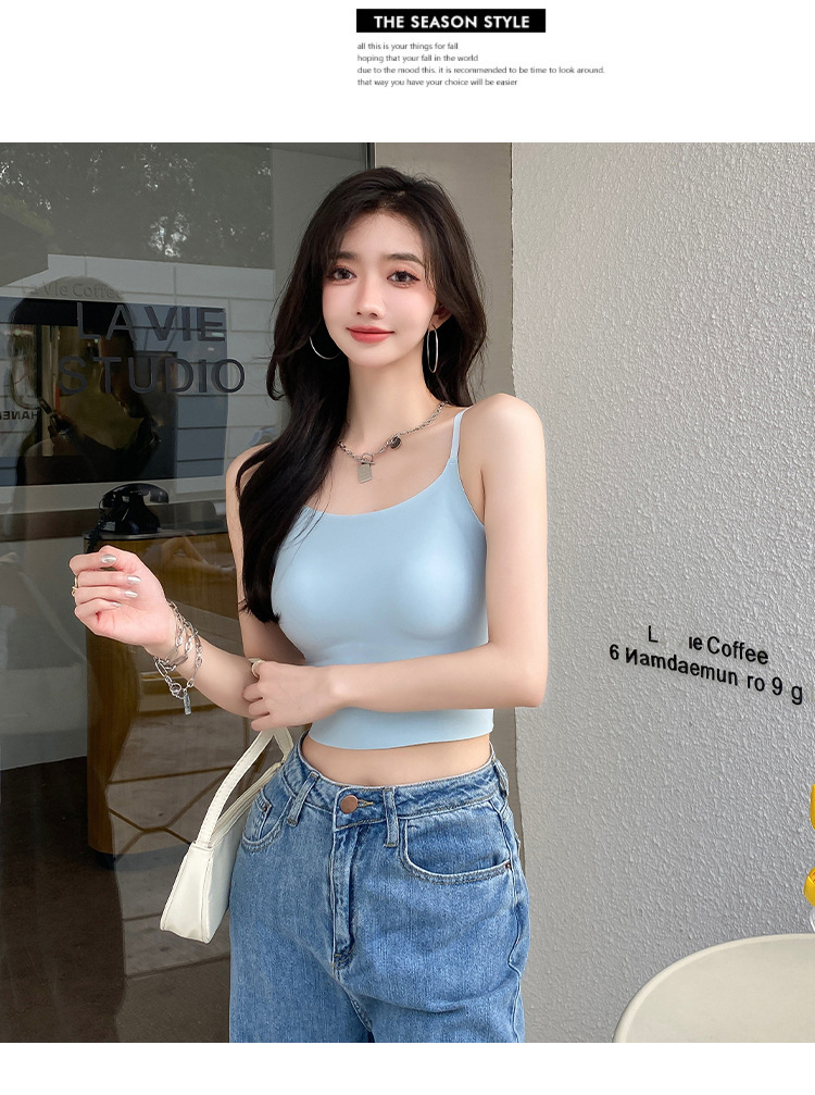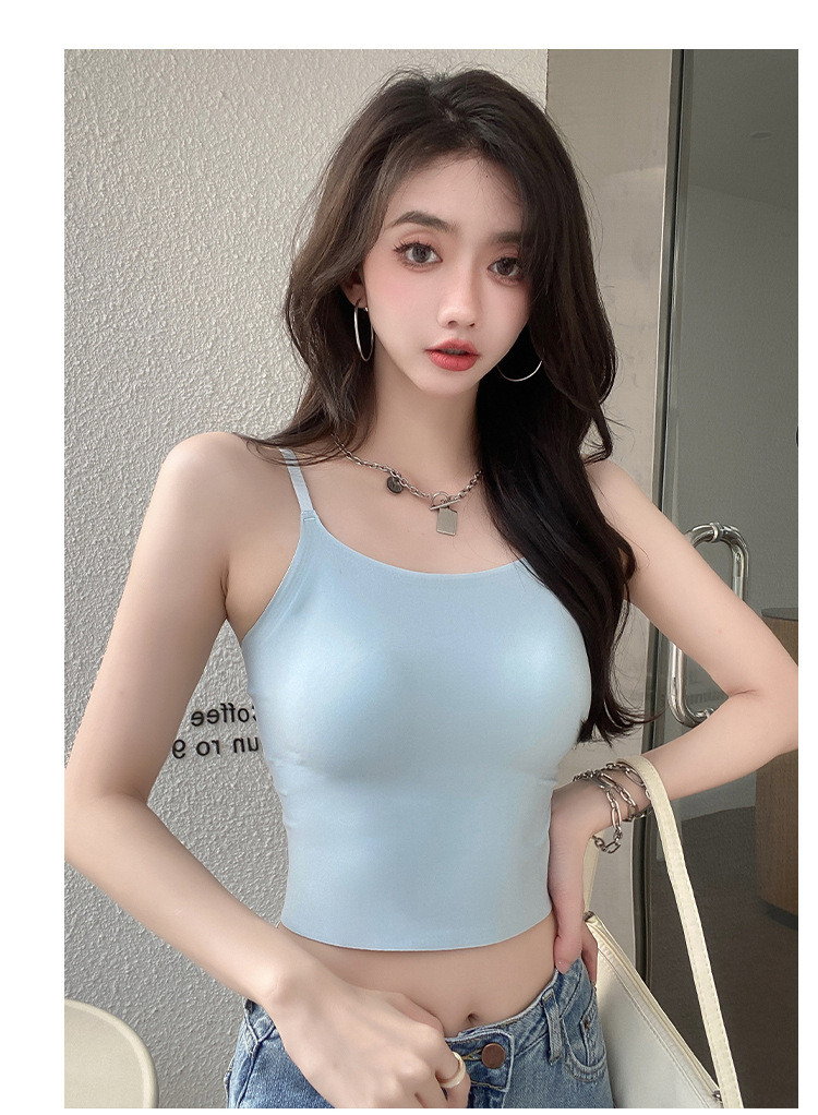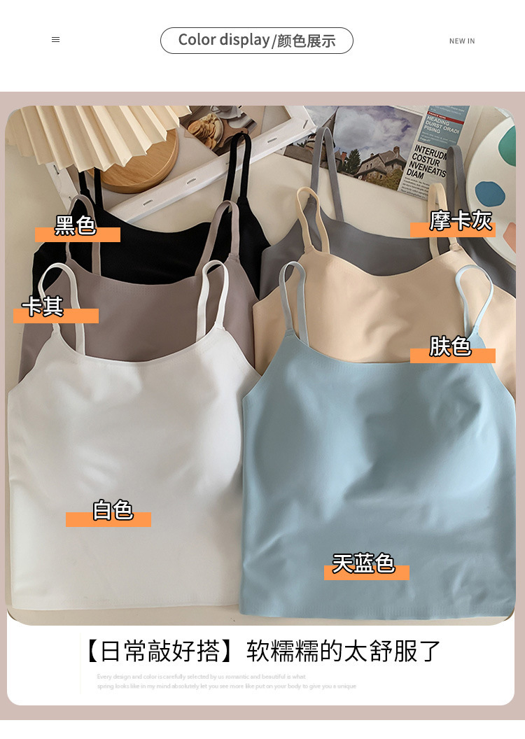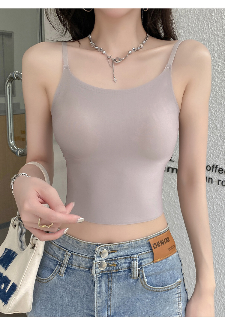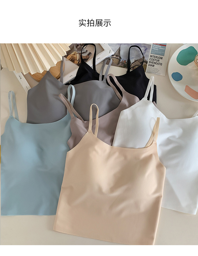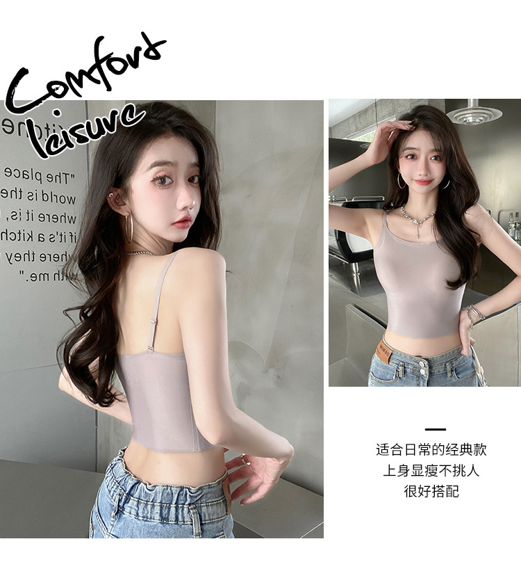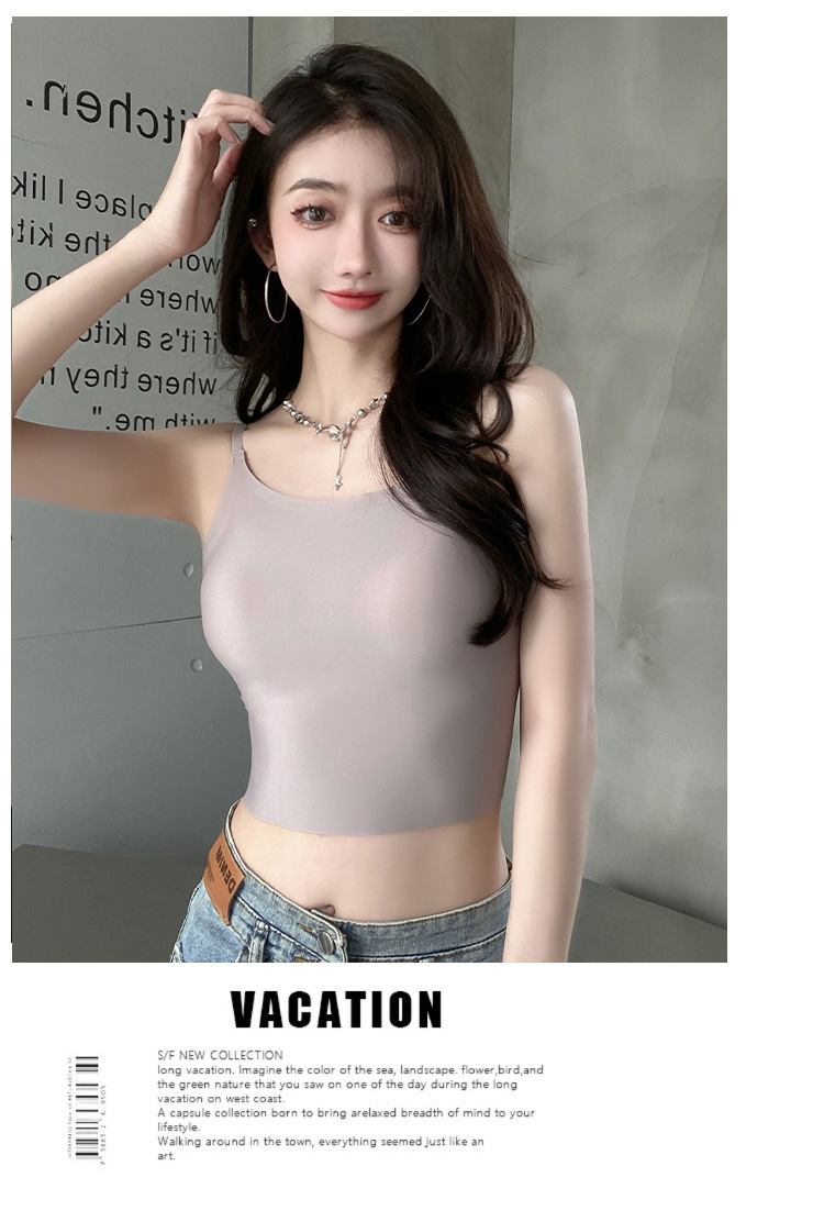 无痕冰丝美背吊带背心裹胸一体固定杯调节肩带内穿外搭抹胸女