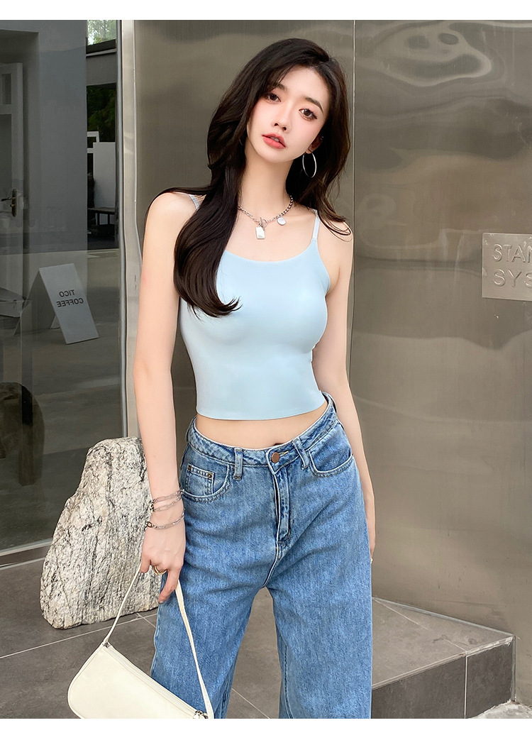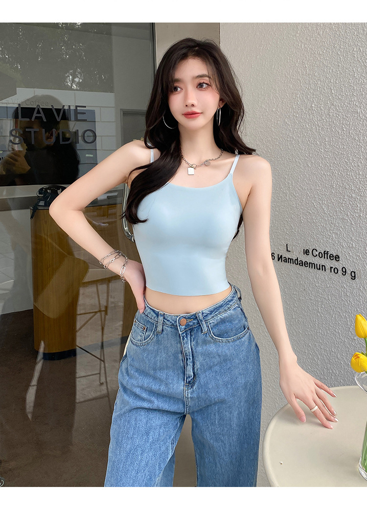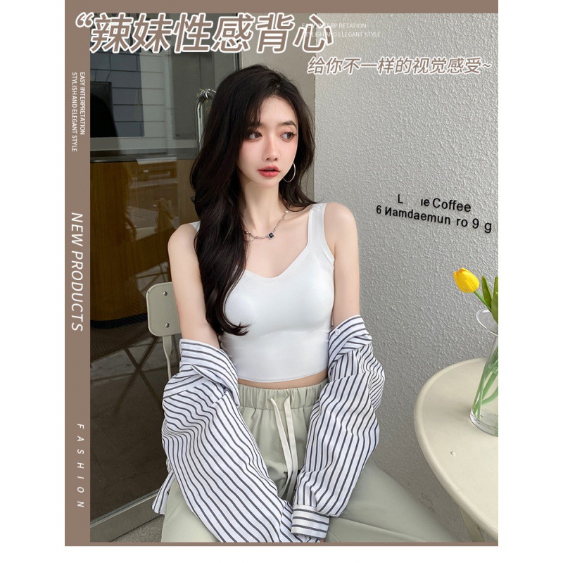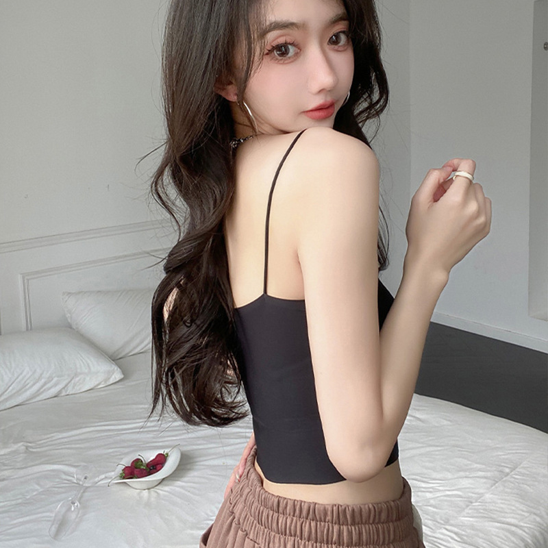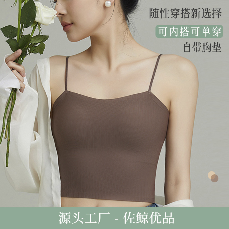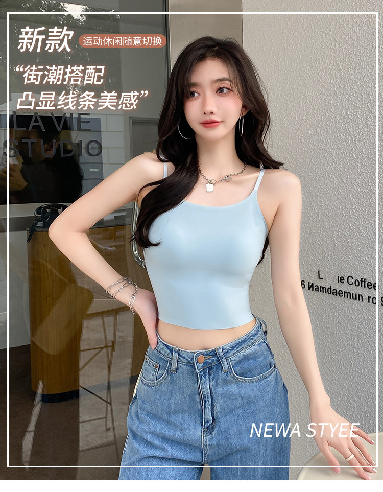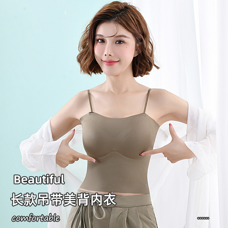无痕冰丝美背吊带背心裹胸一体固定杯调节肩带内穿外搭抹胸女