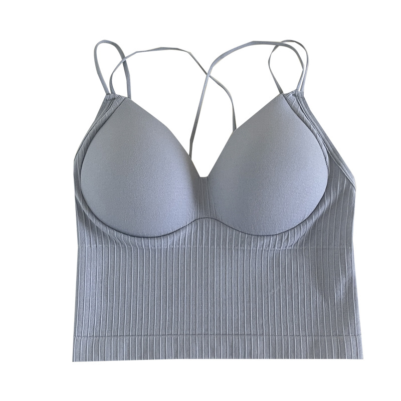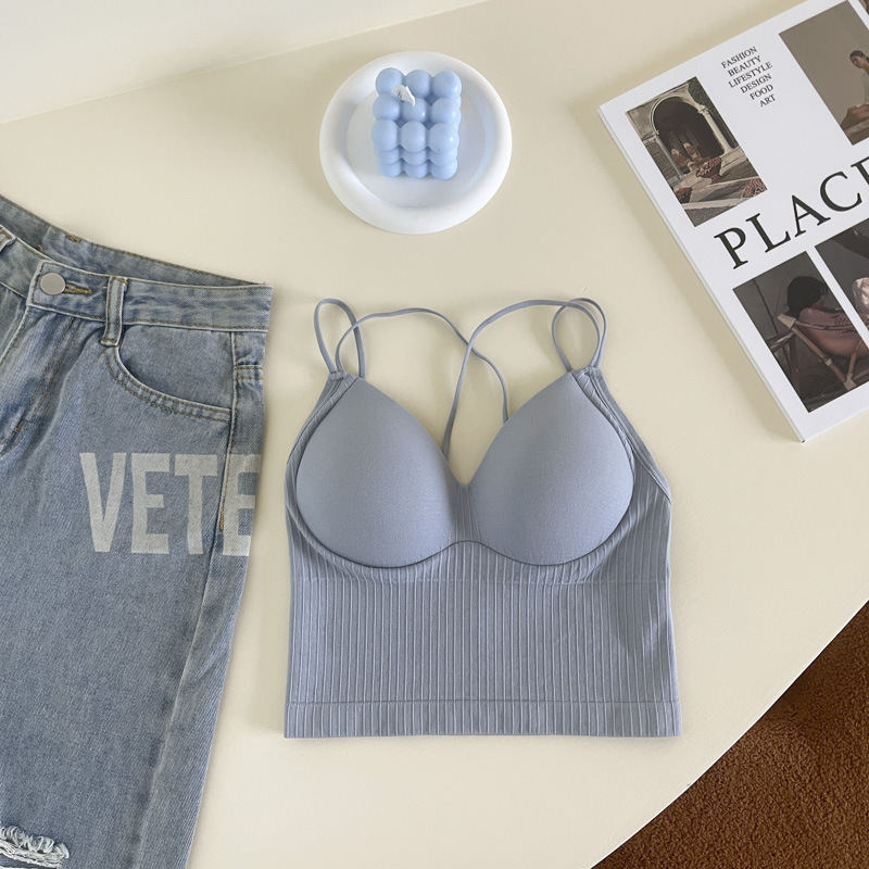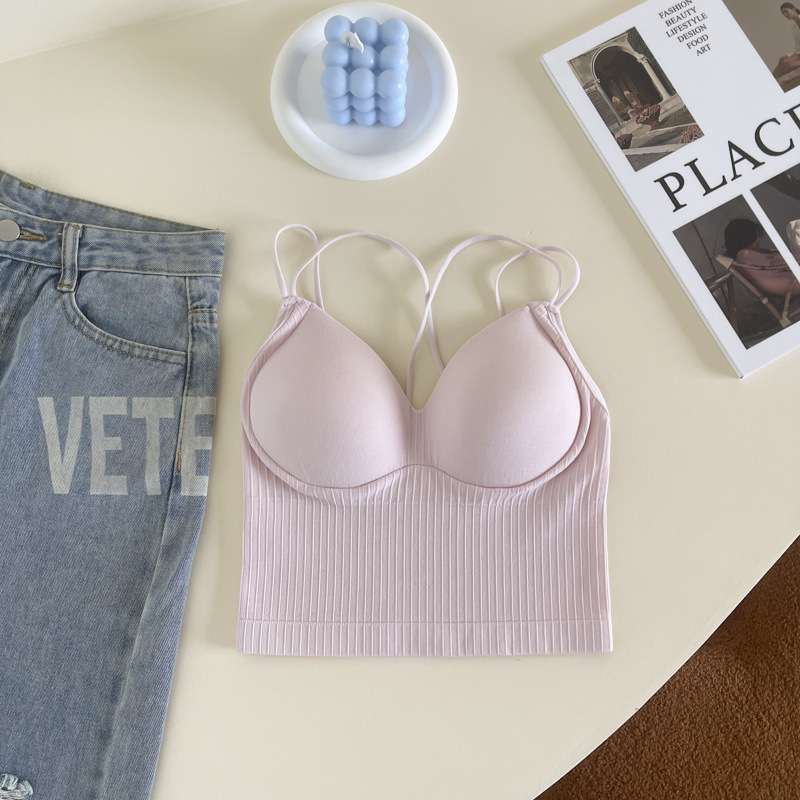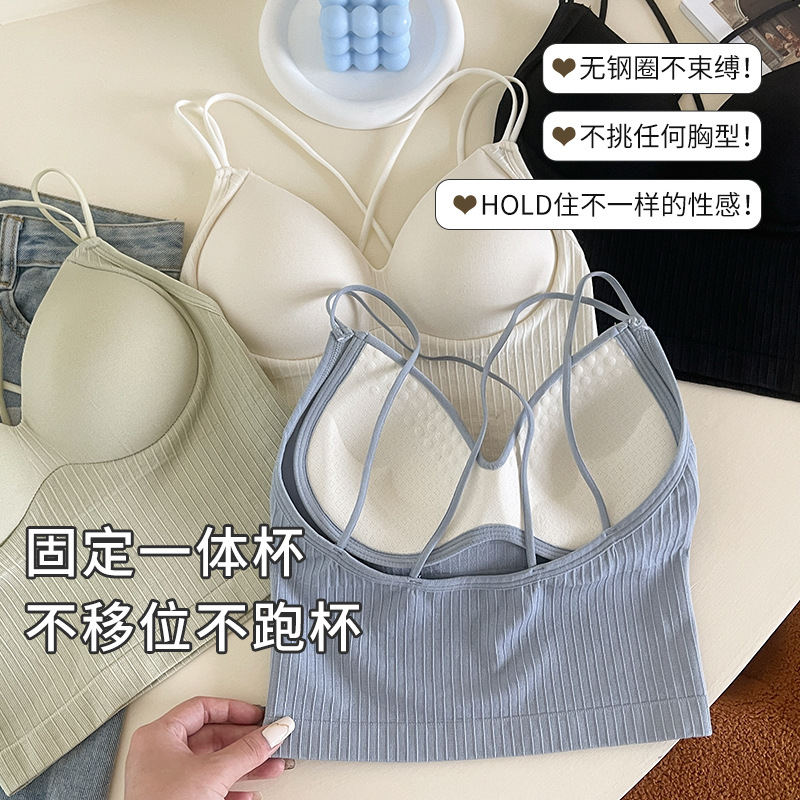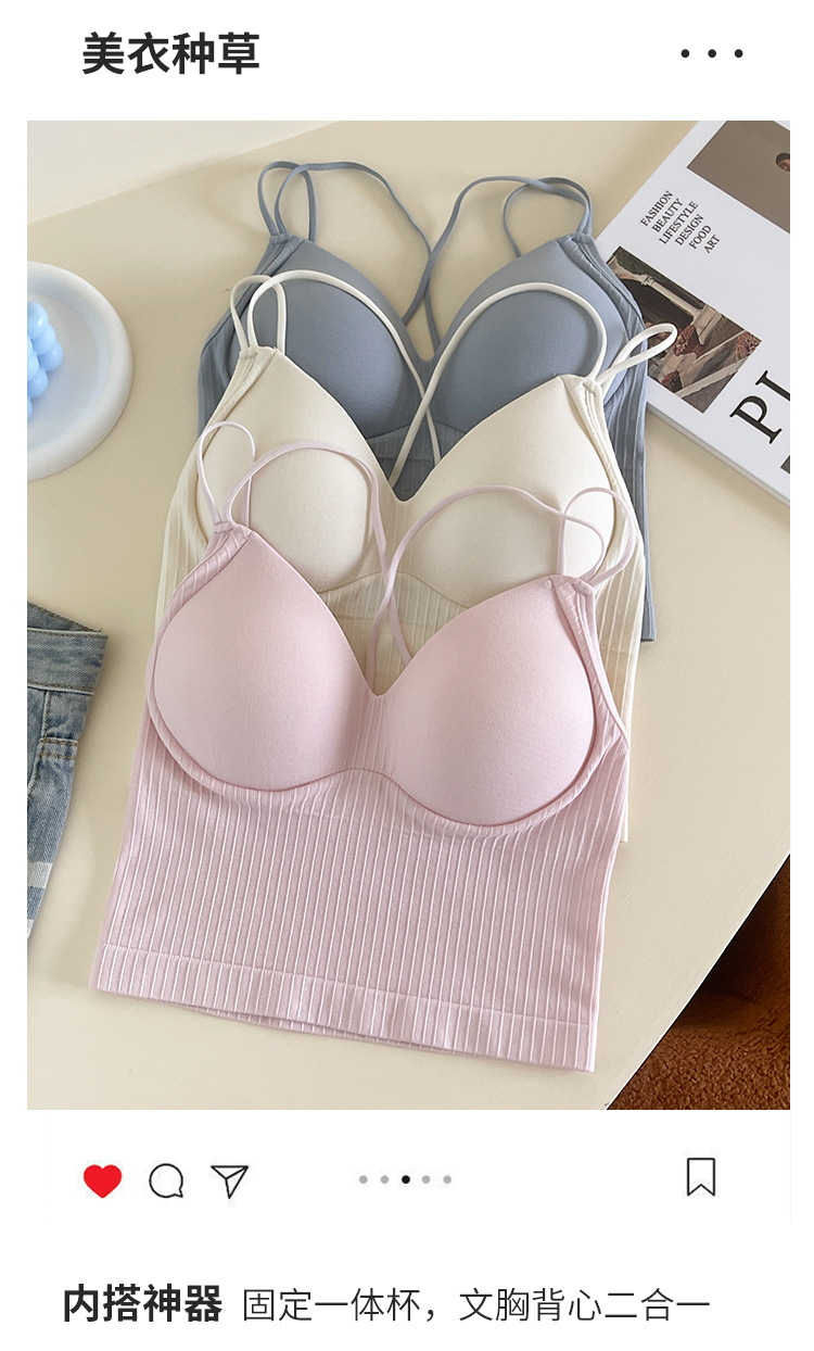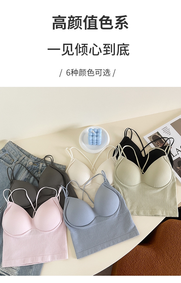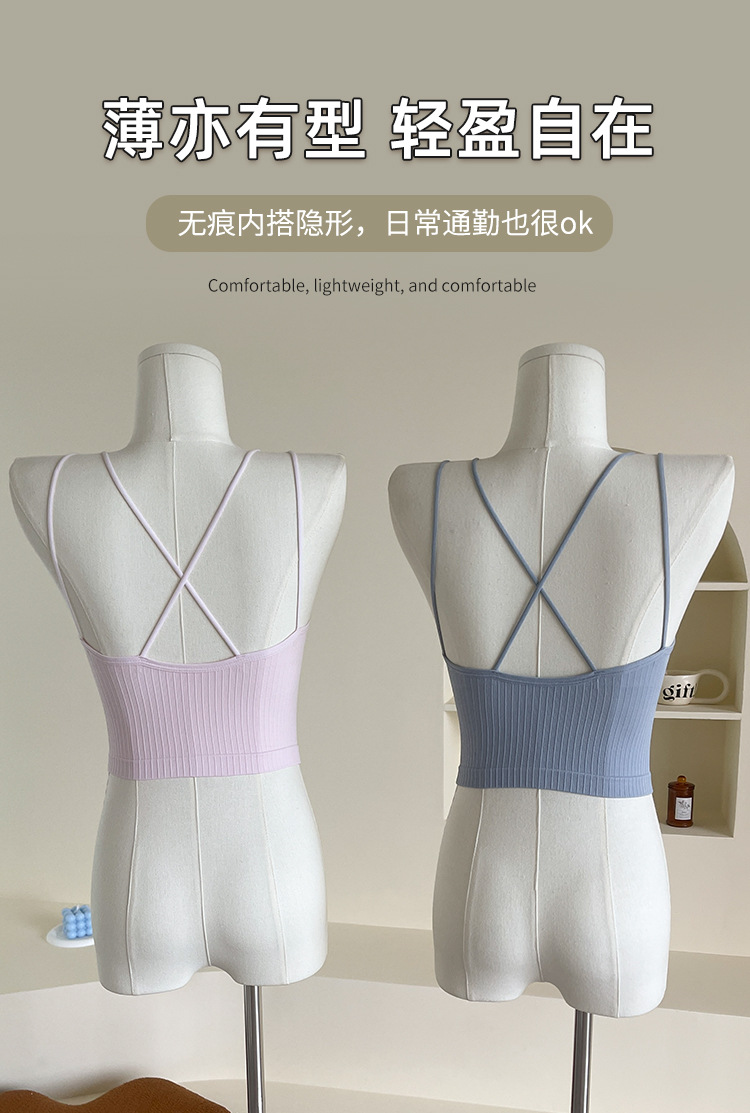 性感双肩交叉美背打底裹胸内衣女士抹胸固定杯吊带背心外穿大露背
